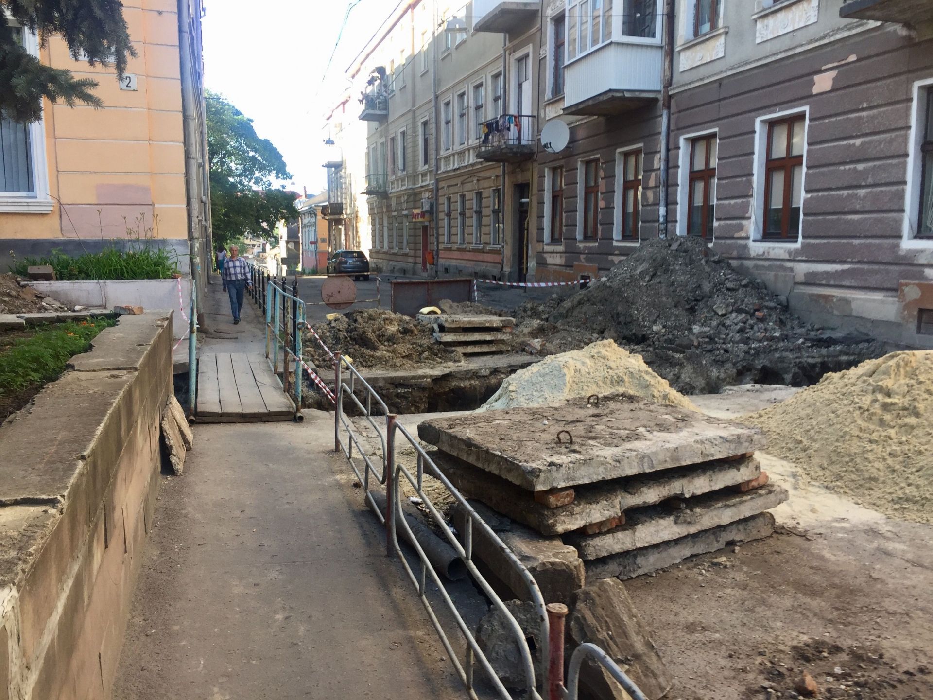 До речі, влаштування труб тепломережі триває на вул Січових Стрільців. Незважаючи на ремонт, там паркуються авто.