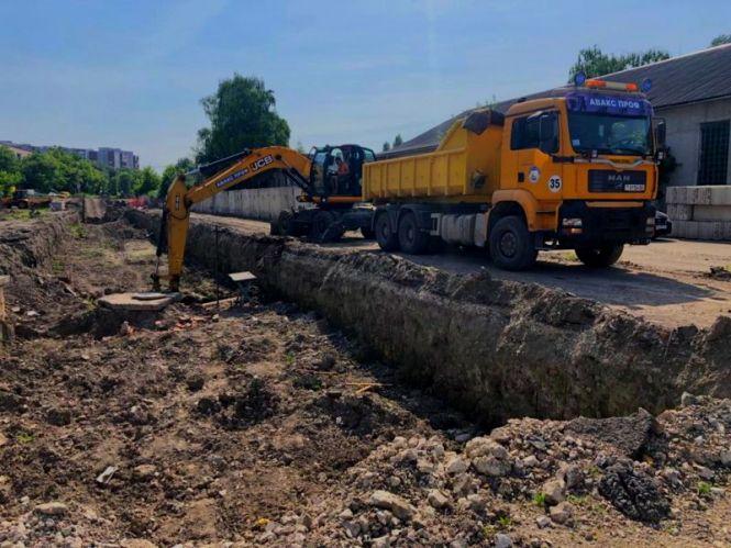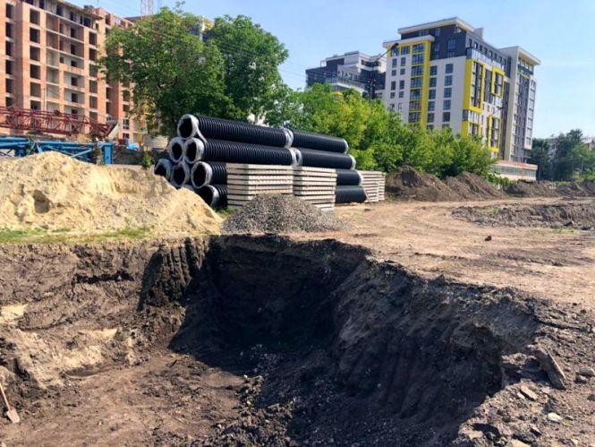 На даний час на об’єкті влаштовують корито дощового колектора та колодязь самоплинної каналізації.