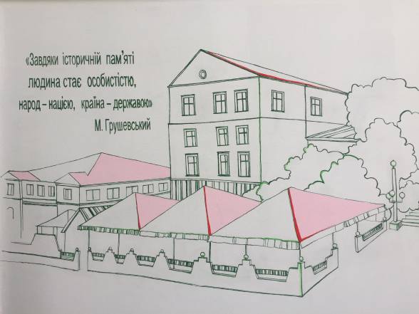 На малюнку є цитата Михайла Грушевського: «Завдяки історичній пам'яті людина стає особистістю, народ – нацією, країна – державою».