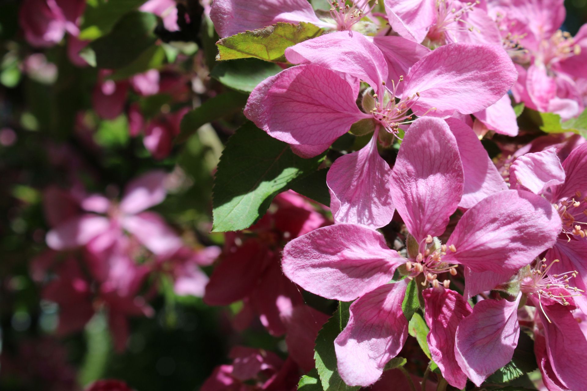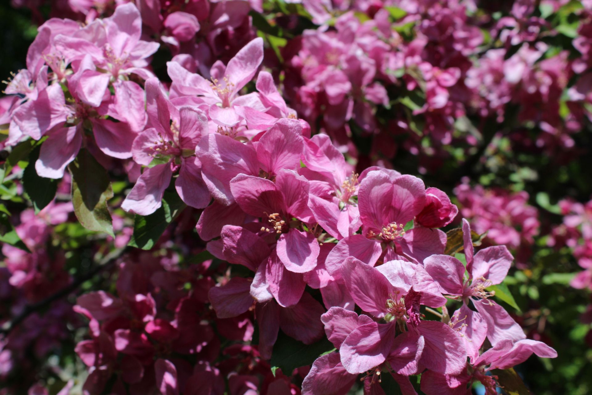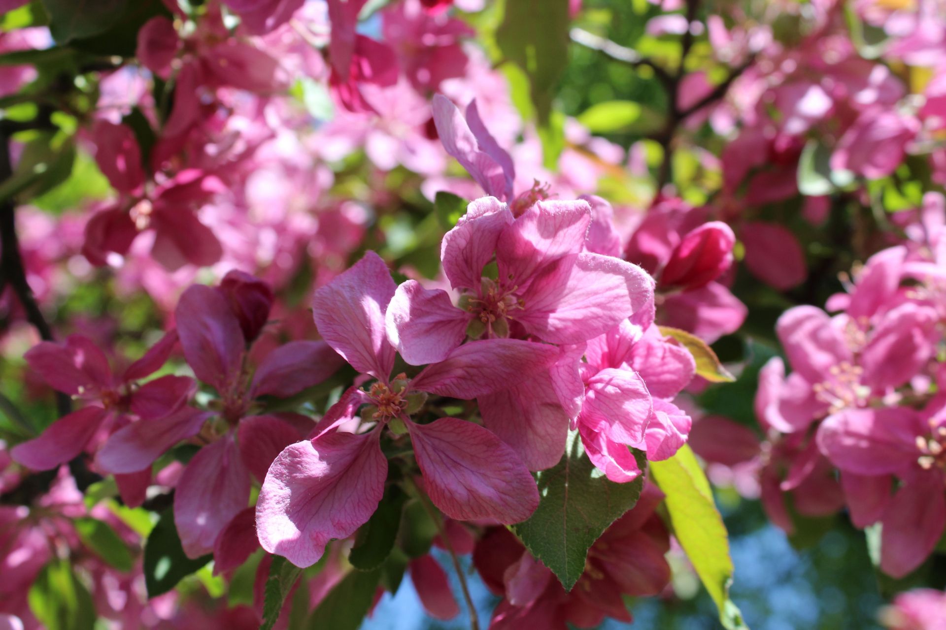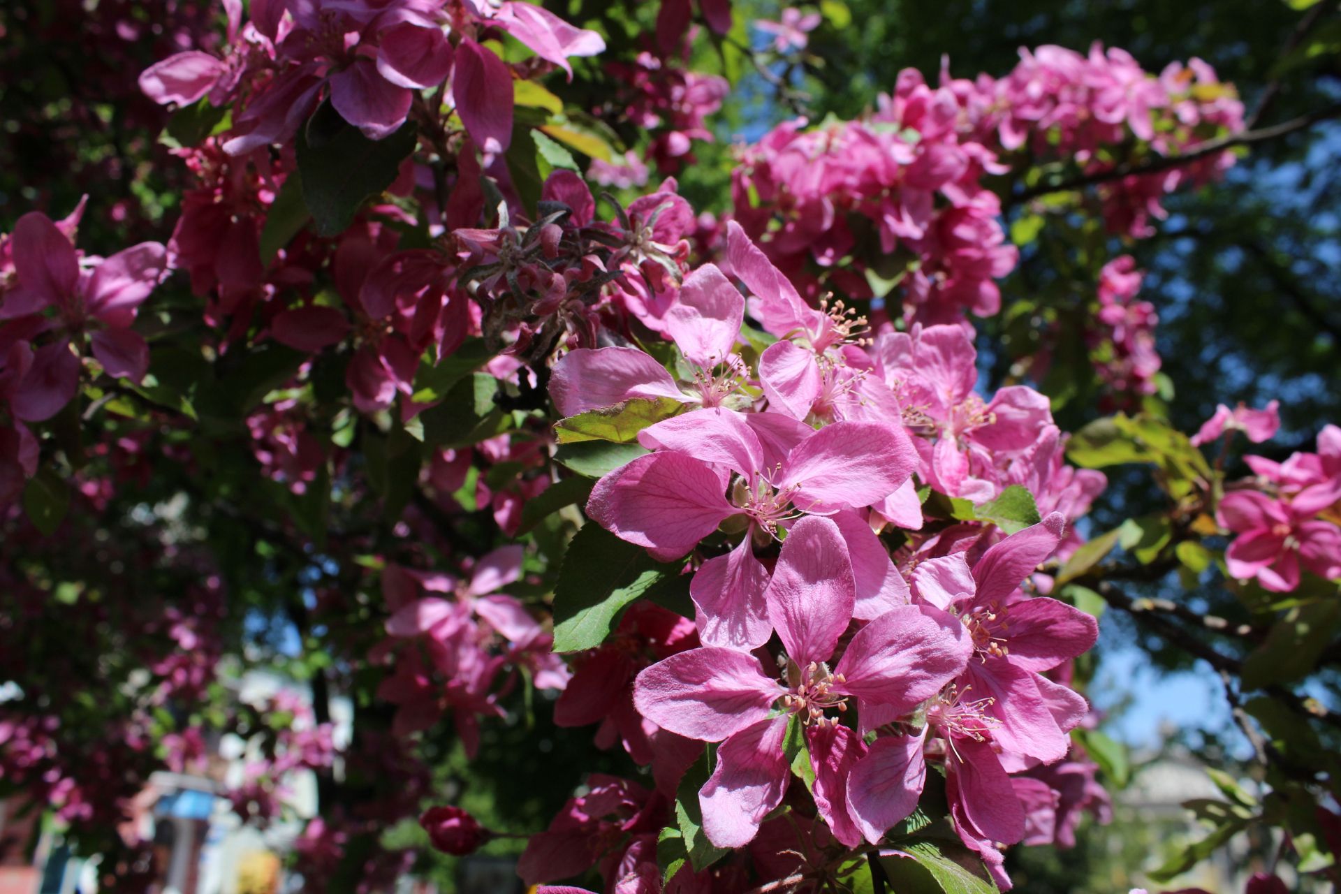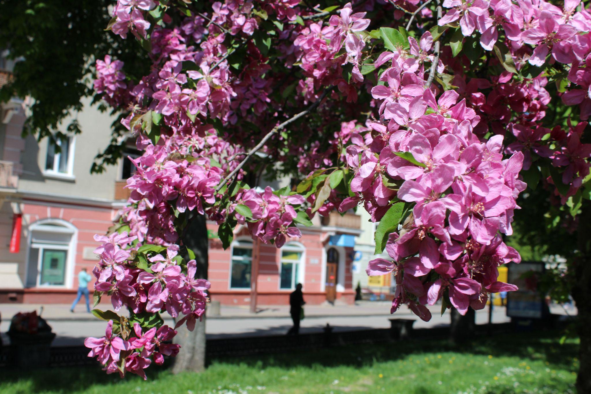 Неподалік ще раніше розпустились квіти яблуні Недзвецького. Яскраво-пурпурові бутони з ніжним запахом точно не залишать нікого байдужим.