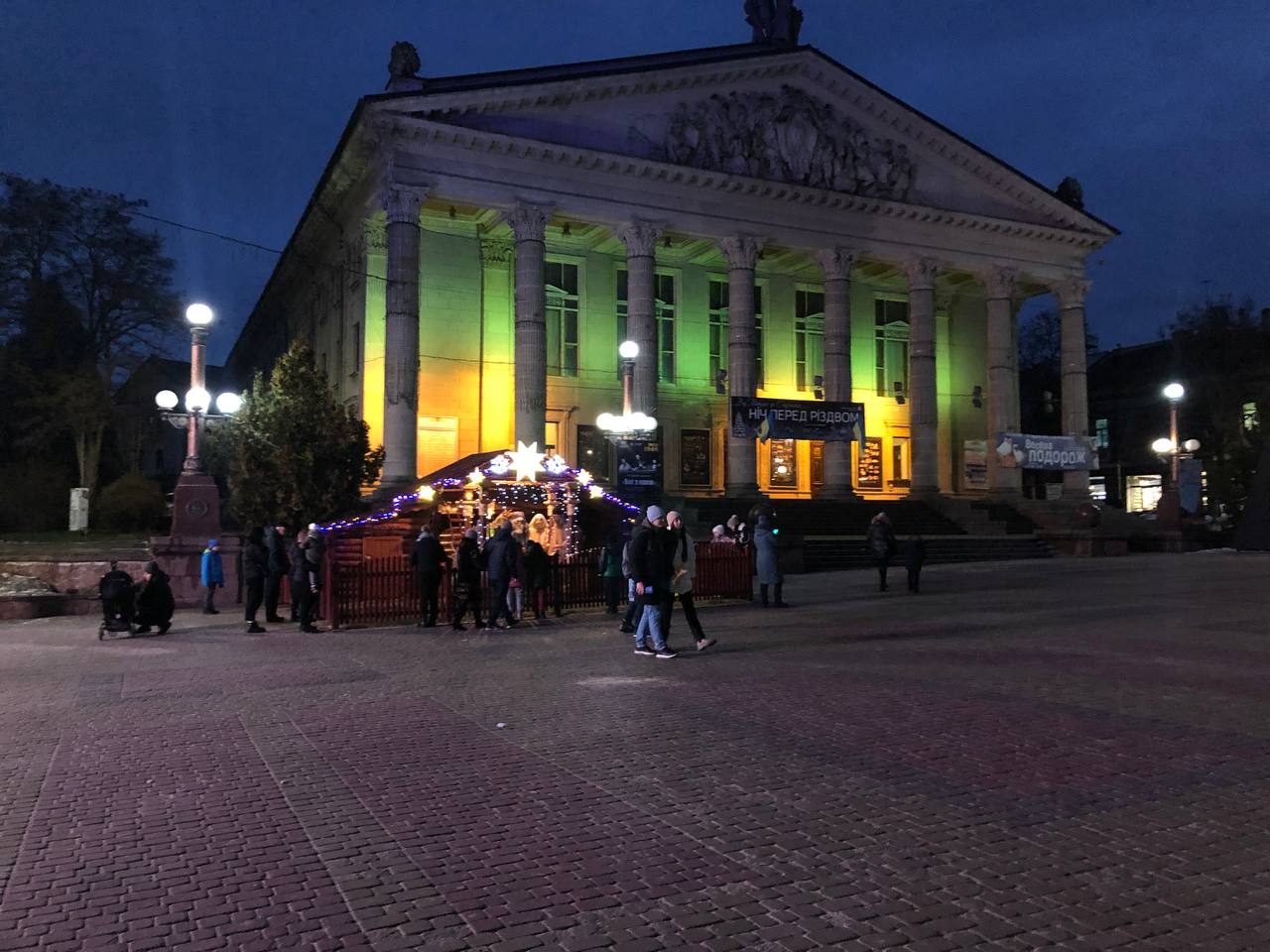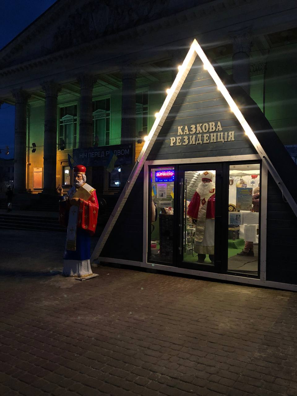 Щодо Театрального майдану, то там працює Резиденція Святого Миколая, а також встановили Різдвяну шопку. Діти разом із батьками приходять до Резиденції, аби познайомитися зі Святим Миколаєм, а також загадати бажання.