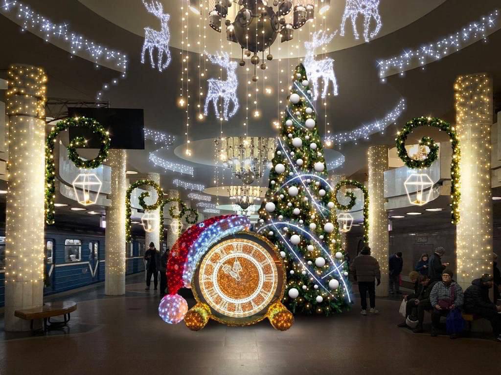 А ось у місті Харков, що з перших днів повномасштабного вторгнення знаходиться під обстрілами вирішили встановити новорічну красуню прямо в метро, а саме на станції «Університет».