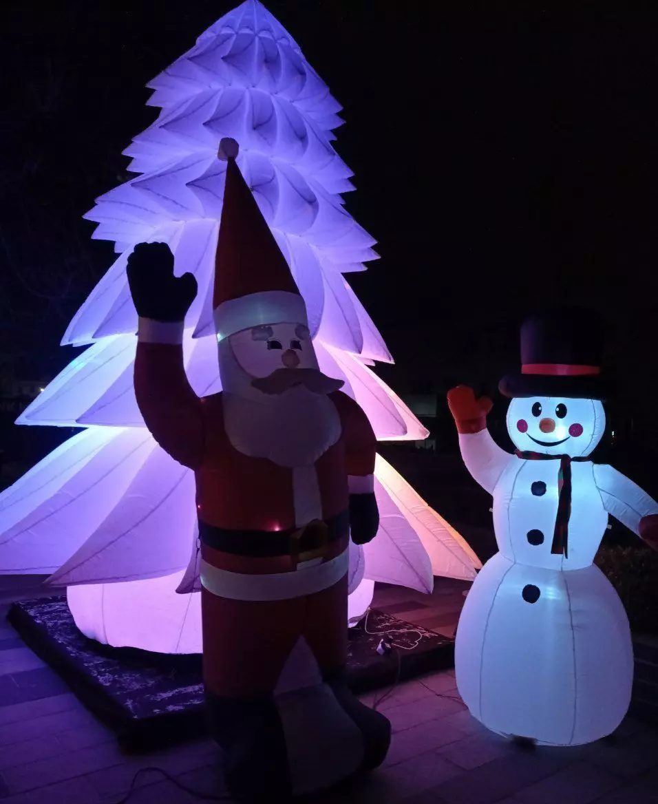 У центрі міста можна побачити надувну ялинку, висотою приблизно три метри. Як ми з'ясували, її встановив місцевий підприємець та ресторатор Тарас Ковальчук біля кафе.