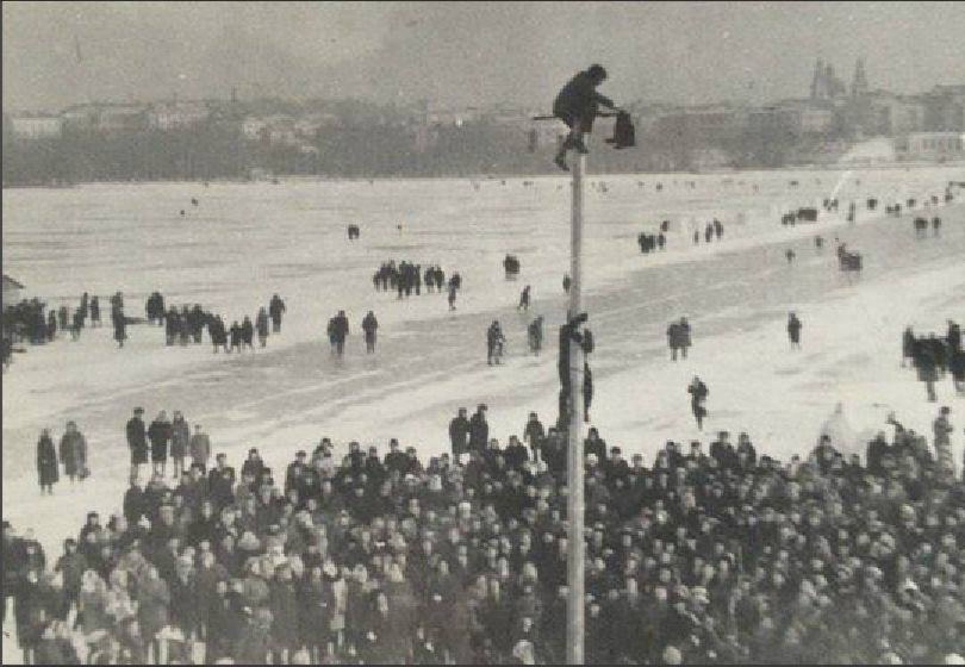 - Свято зими... фотографії кінця 60-тих початку 70-тих.. на озеро сідав кукурузник... біля ближнього пляжу був трамплін для лижників... були сани, які мужчини крутили по кругу і хто міг довше втриматись на них... велике багаття... від морської школи ДТСААФ до ближнього були виліплині снігові фігури також і в парку... стовпи, на які влазили люди, щоб щось собі зняти...різні зимові змагання... катання на санах, запряженими кіньми... весело було! - написав Віктор Мадрі.