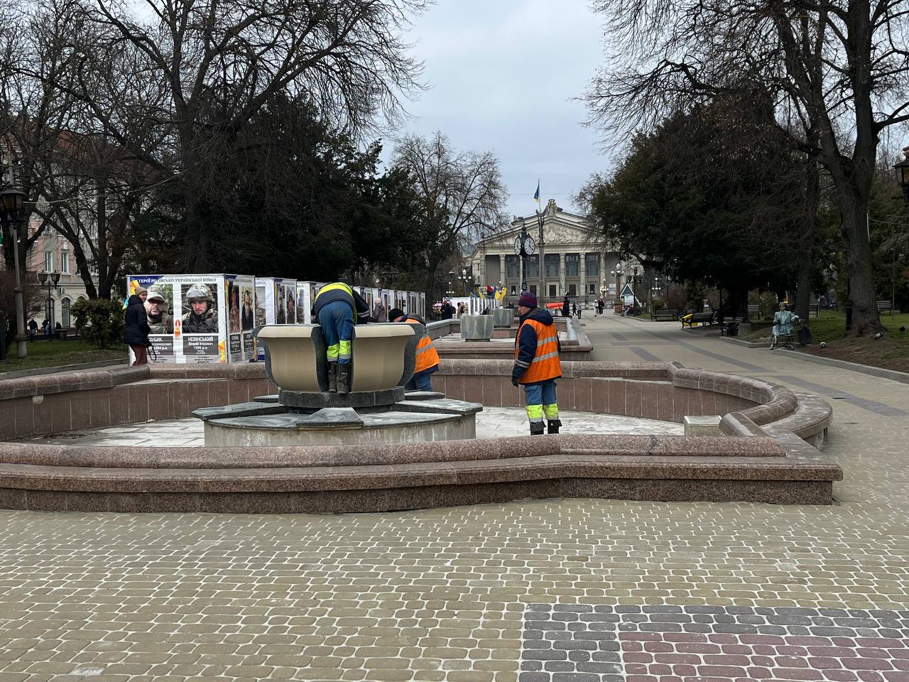 Тернопільські фонтани приводять до ладу після зими: фото дня