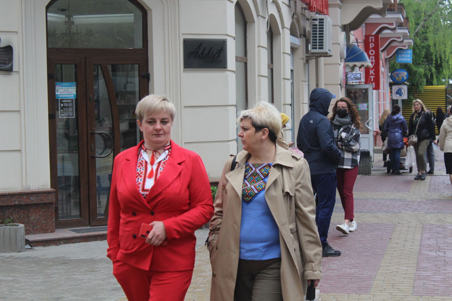 Дехто, незважаючи на дощ та прохолодне повітря, вирішив показати свою патріотичну позицію. Вишиванки тернополяни обирають з місцевими орнаментами. Дехто купує вбрання та удосконалює його.