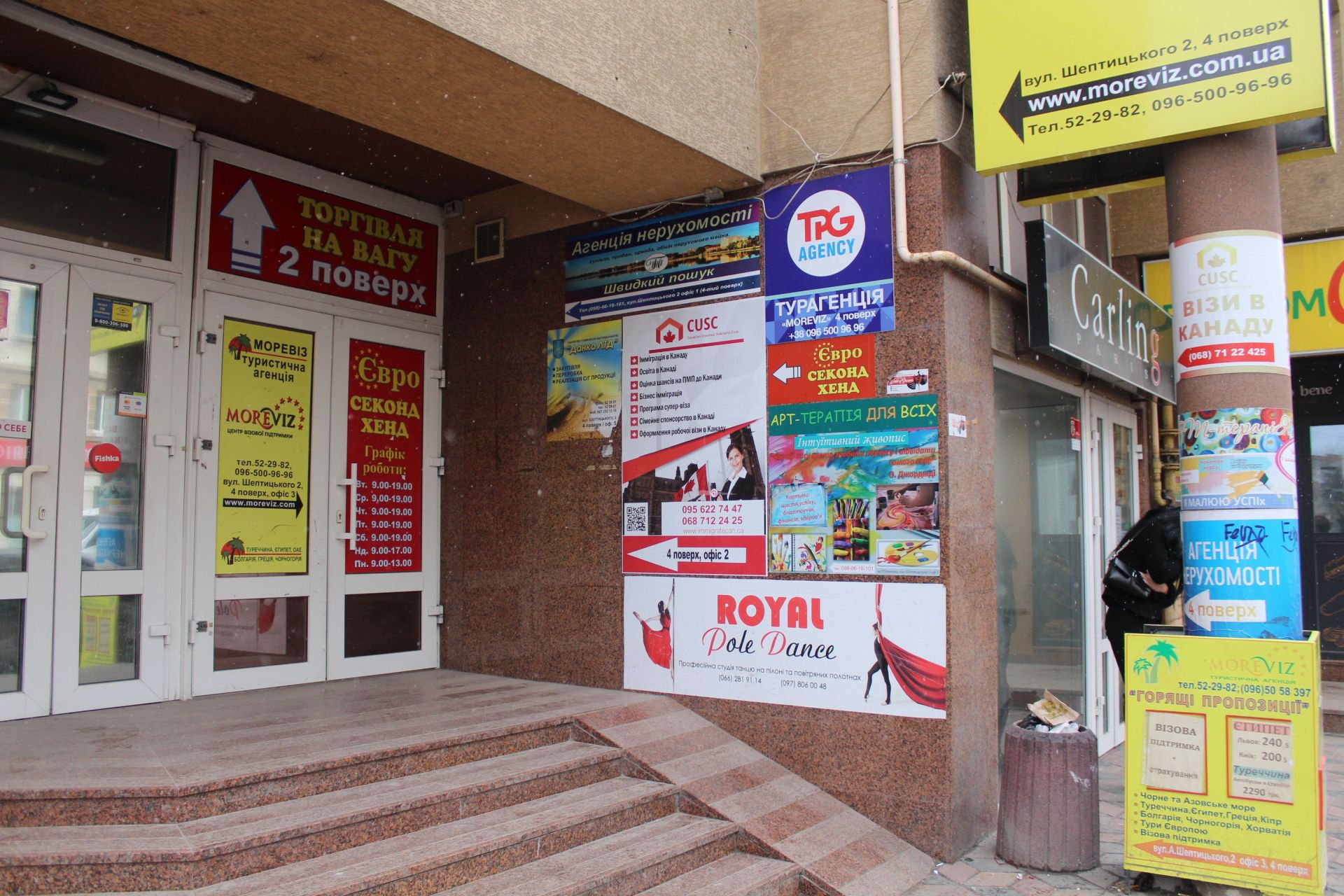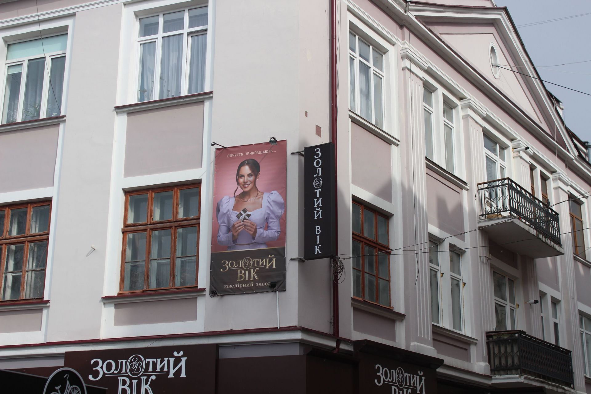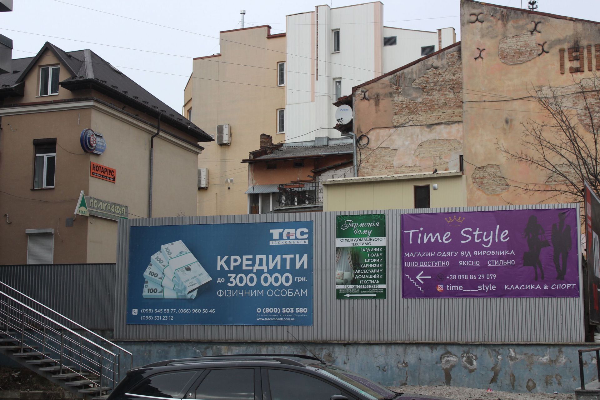 Чи не найбільше цих вивісок в районі Центрального ринку. На вулицях Шептицького та Живова будинки, всіяні рекламою. Деяка з них вже давно вигоріла на сонці.