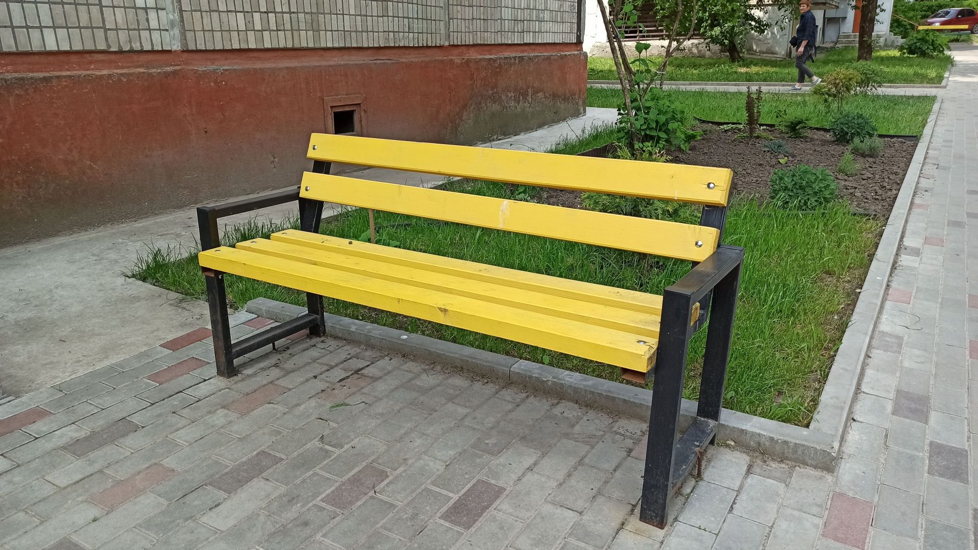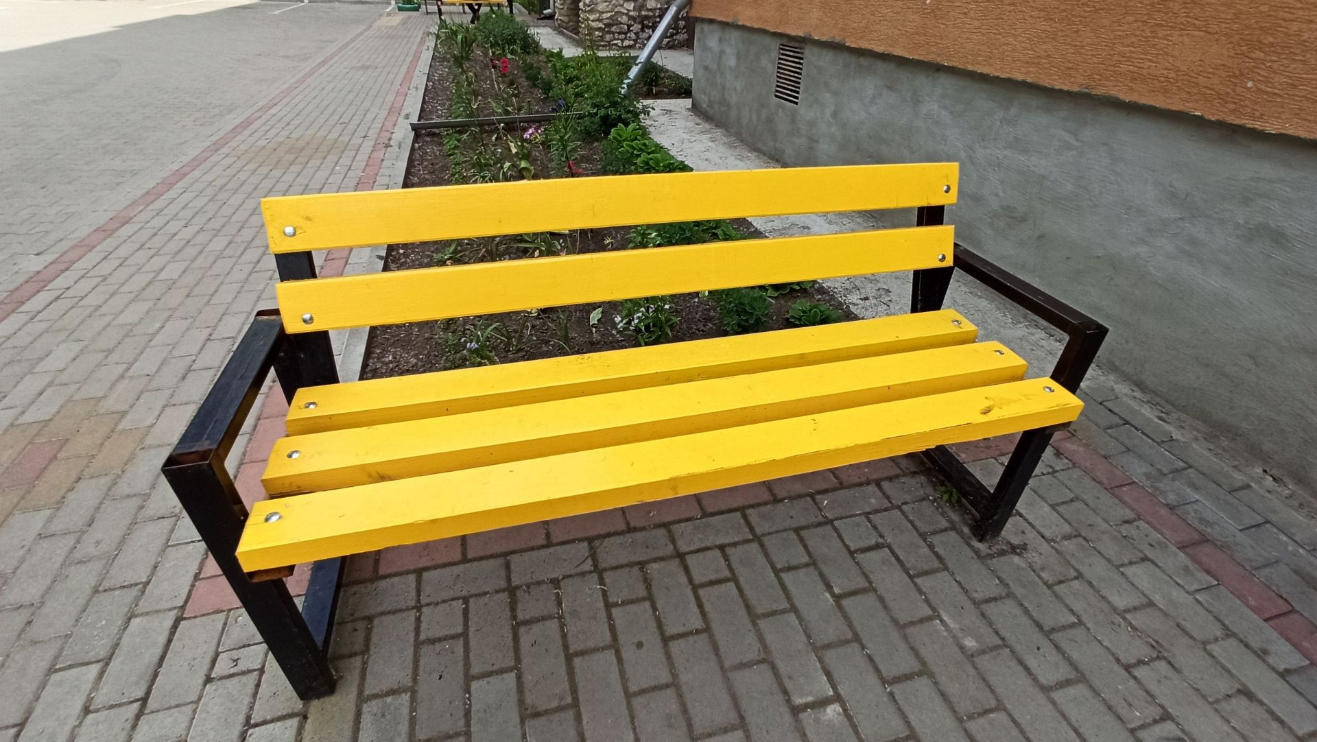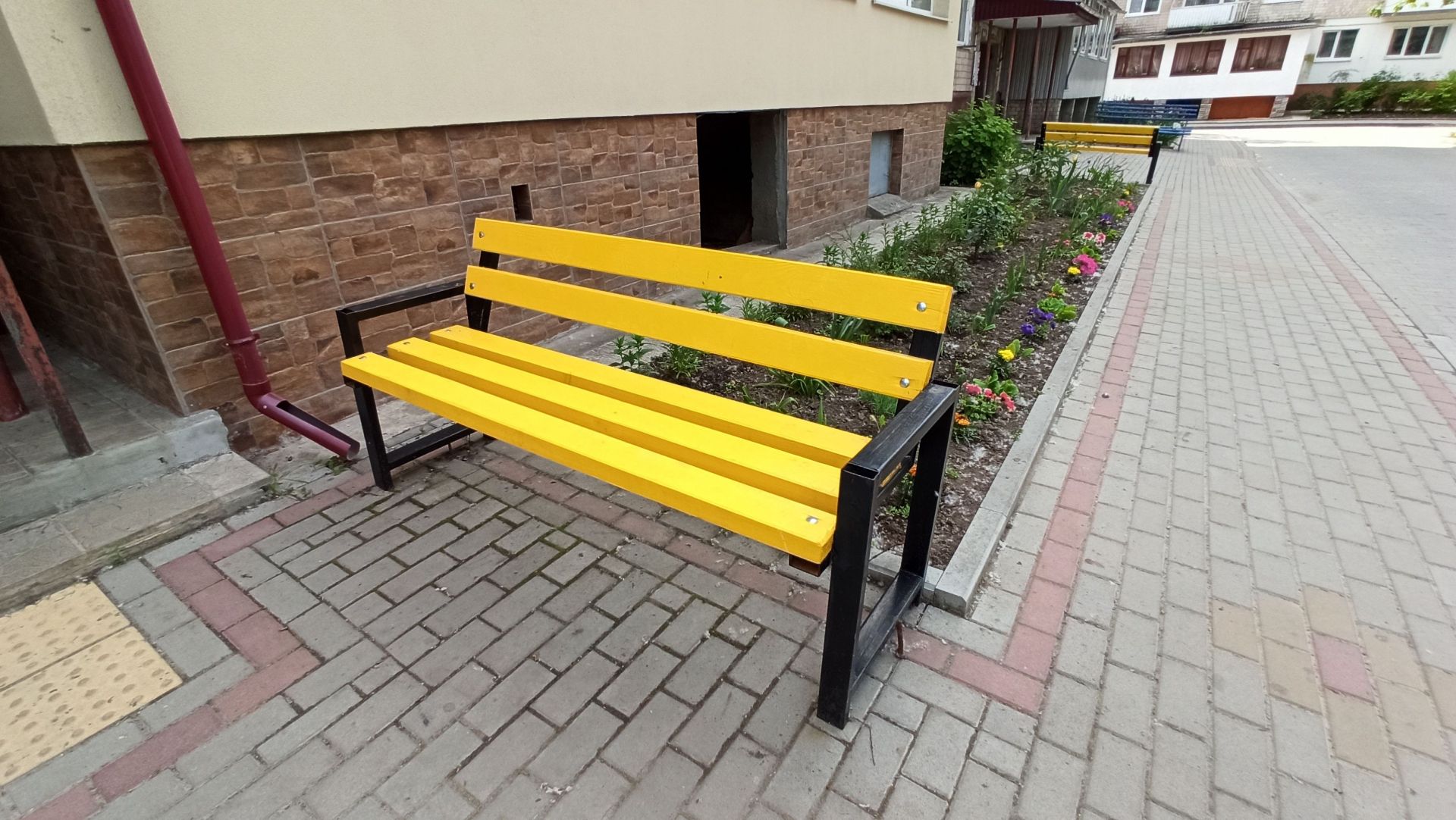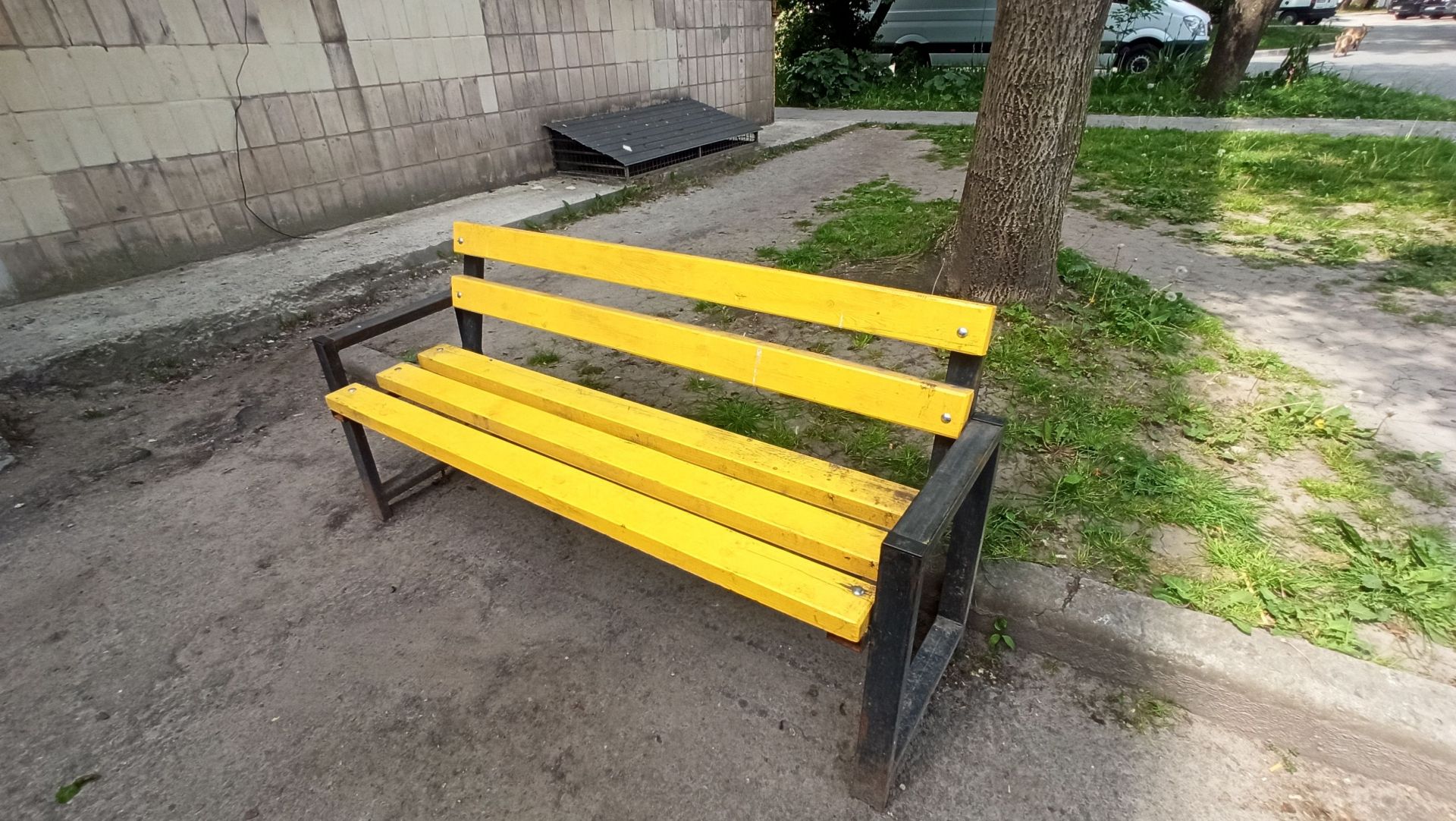 Ми також перевірили усі лавочки, які облаштували біля багатоповерхівок на вулиці Лесі Українки (адже саме тут їх у рамках двомісячника благоустрою з’явилось найбільше). Нагадаємо, що нові лавки для відпочинку встановили біля будинків №10, №29, №35 та №39. Усі вони, як виявилось, абсолютно однакові – дерев’яні з металевим каркасом. Верх пофарбований у яскравий жовтий колір, а низ – чорний.