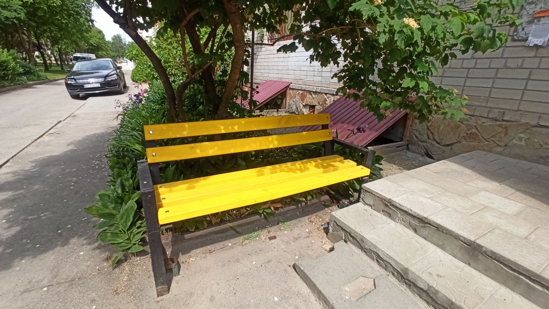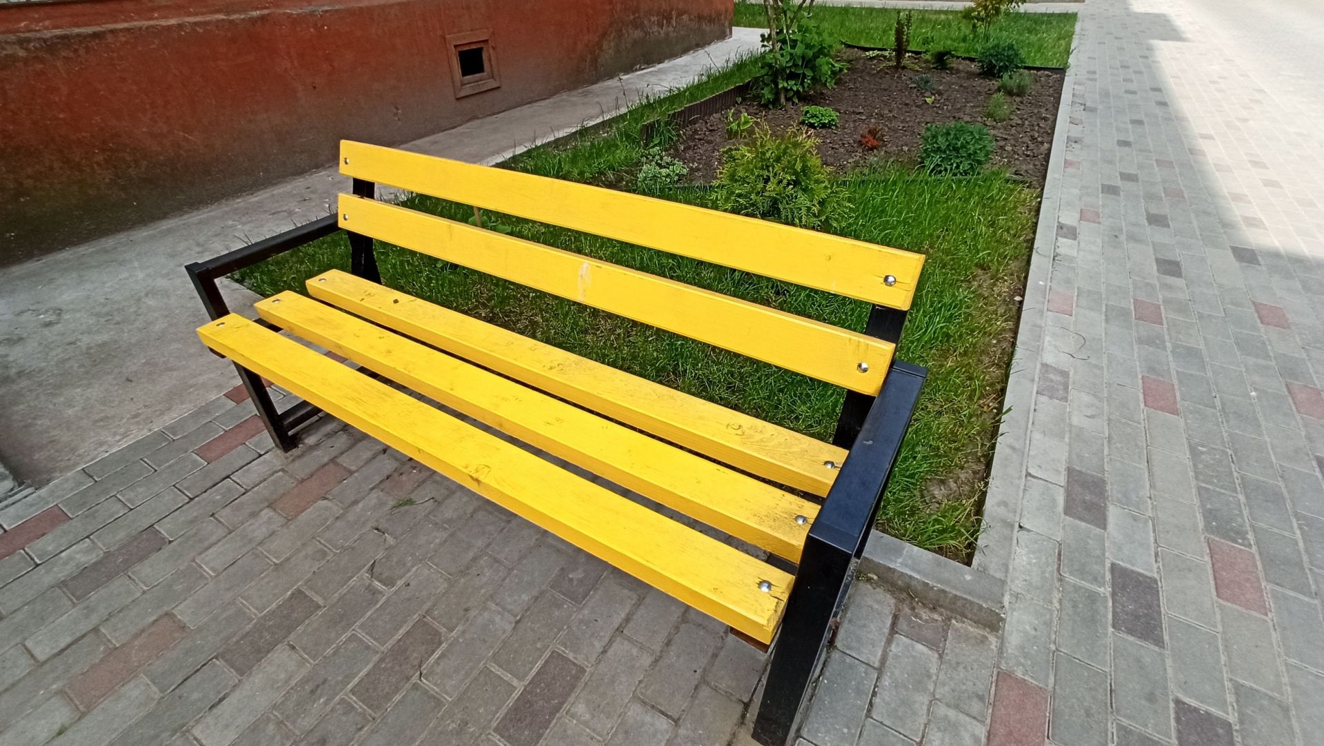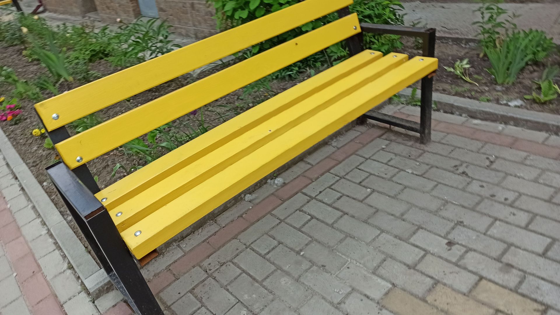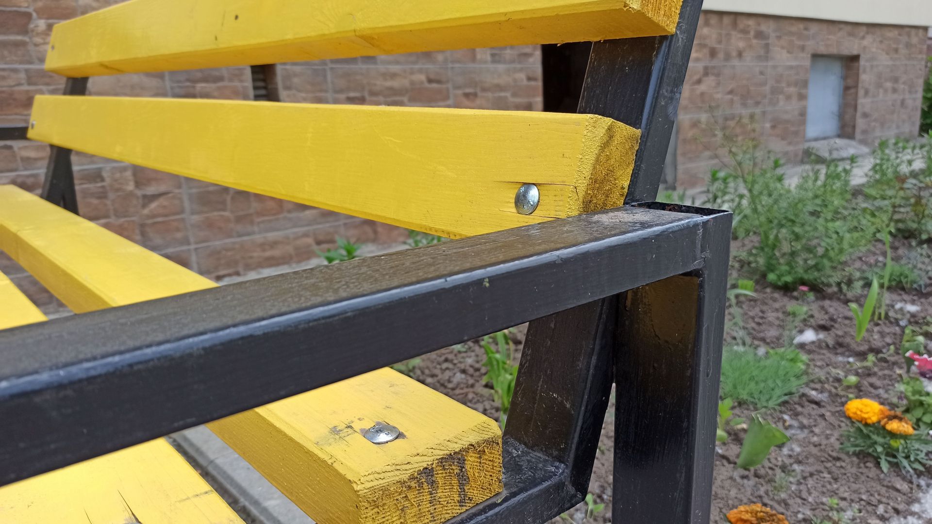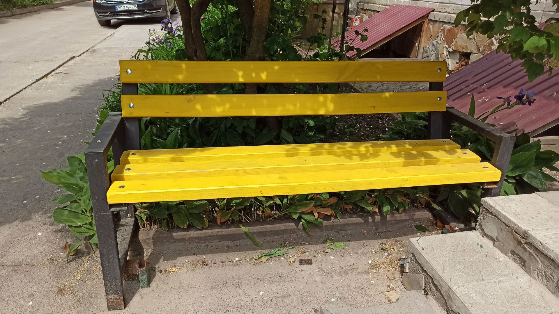 Ми також перевірили усі лавочки, які облаштували біля багатоповерхівок на вулиці Лесі Українки (адже саме тут їх у рамках двомісячника благоустрою з’явилось найбільше). Нагадаємо, що нові лавки для відпочинку встановили біля будинків №10, №29, №35 та №39. Усі вони, як виявилось, абсолютно однакові – дерев’яні з металевим каркасом. Верх пофарбований у яскравий жовтий колір, а низ – чорний.