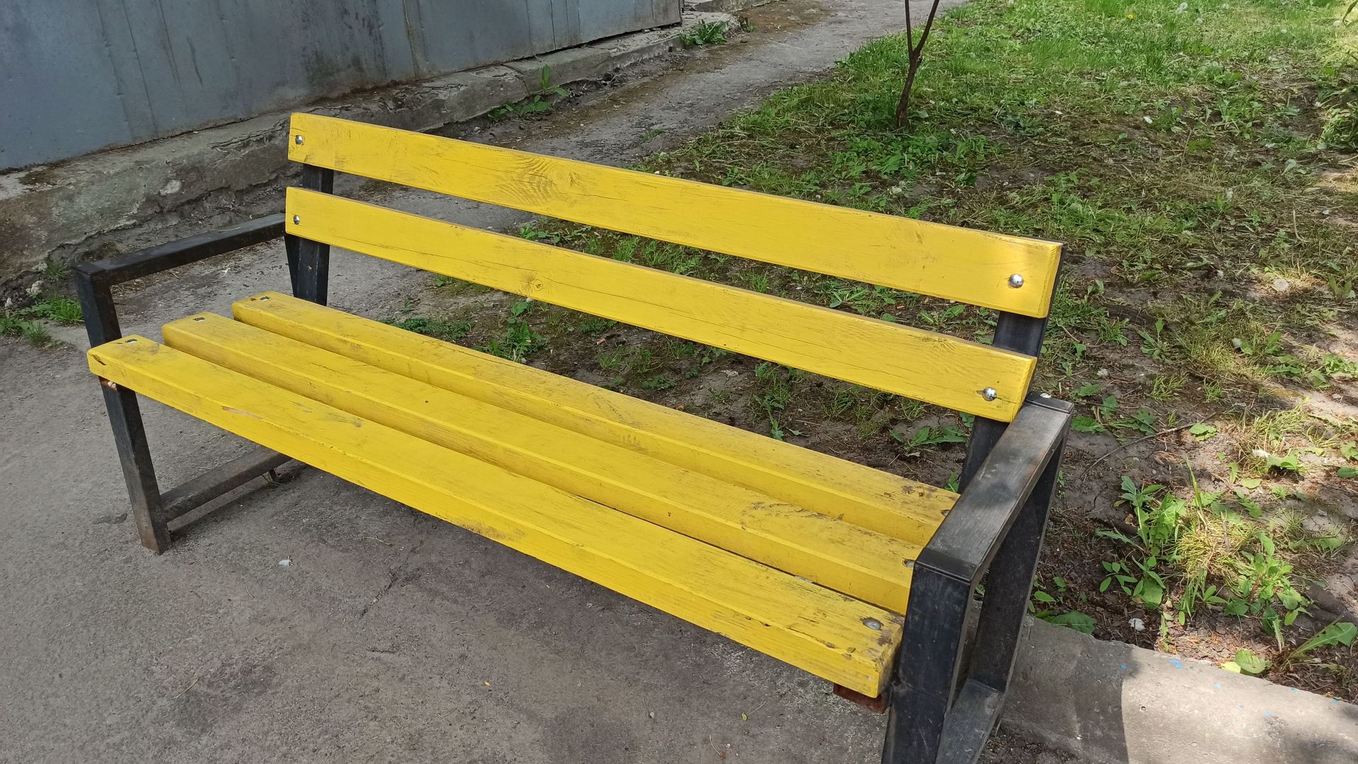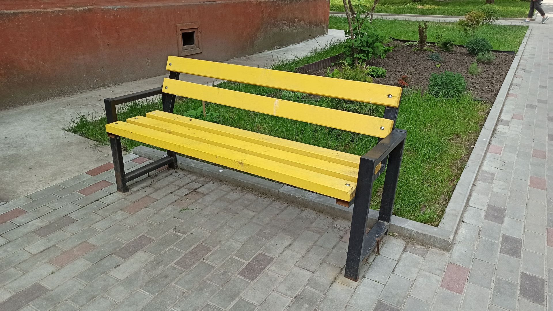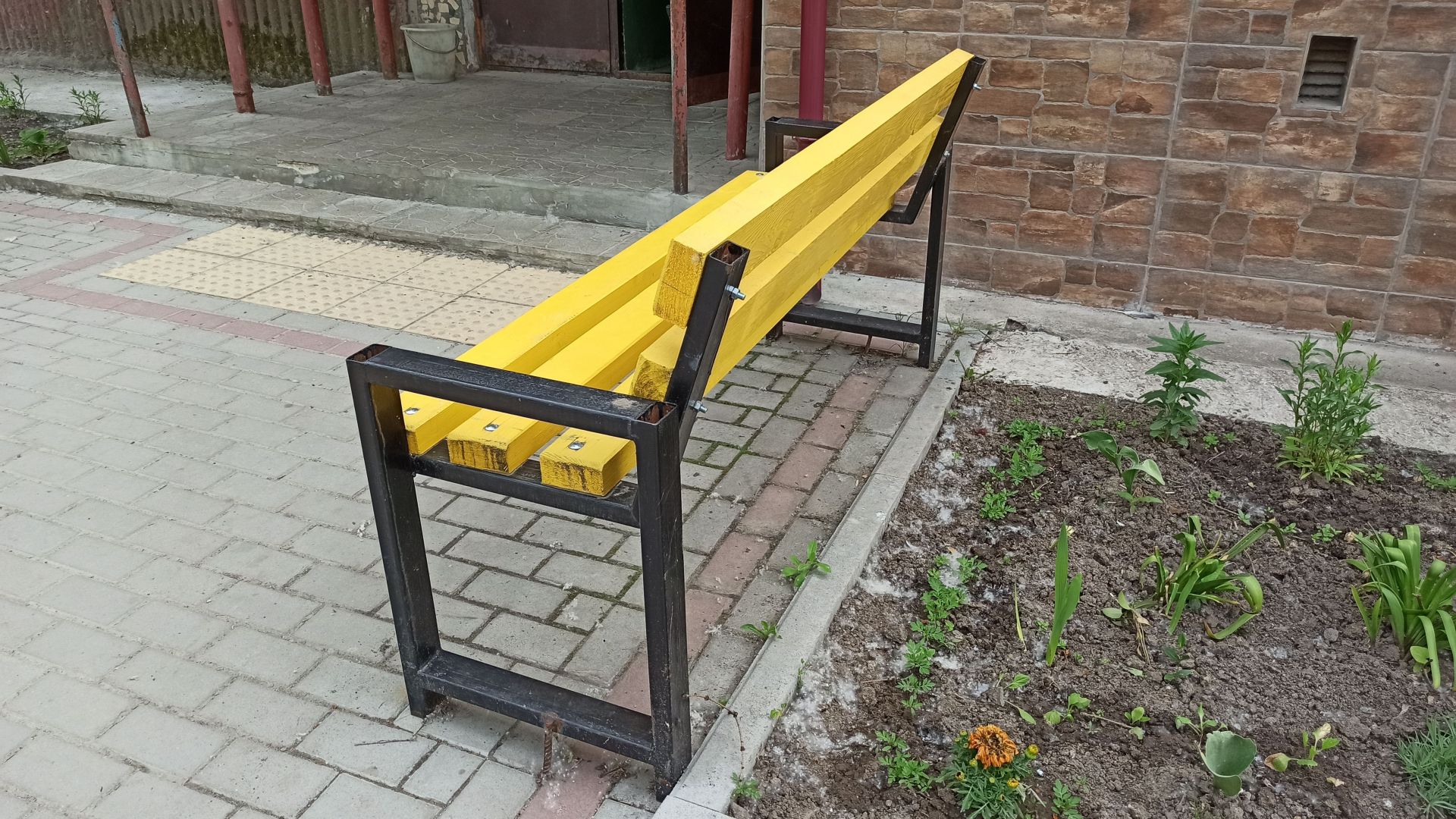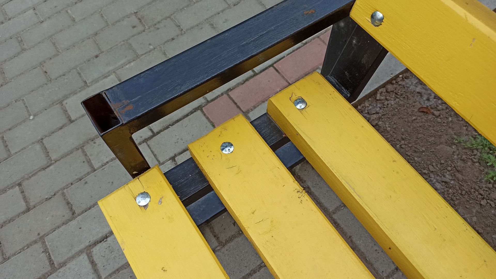 Ми також перевірили усі лавочки, які облаштували біля багатоповерхівок на вулиці Лесі Українки (адже саме тут їх у рамках двомісячника благоустрою з’явилось найбільше). Нагадаємо, що нові лавки для відпочинку встановили біля будинків №10, №29, №35 та №39. Усі вони, як виявилось, абсолютно однакові – дерев’яні з металевим каркасом. Верх пофарбований у яскравий жовтий колір, а низ – чорний.