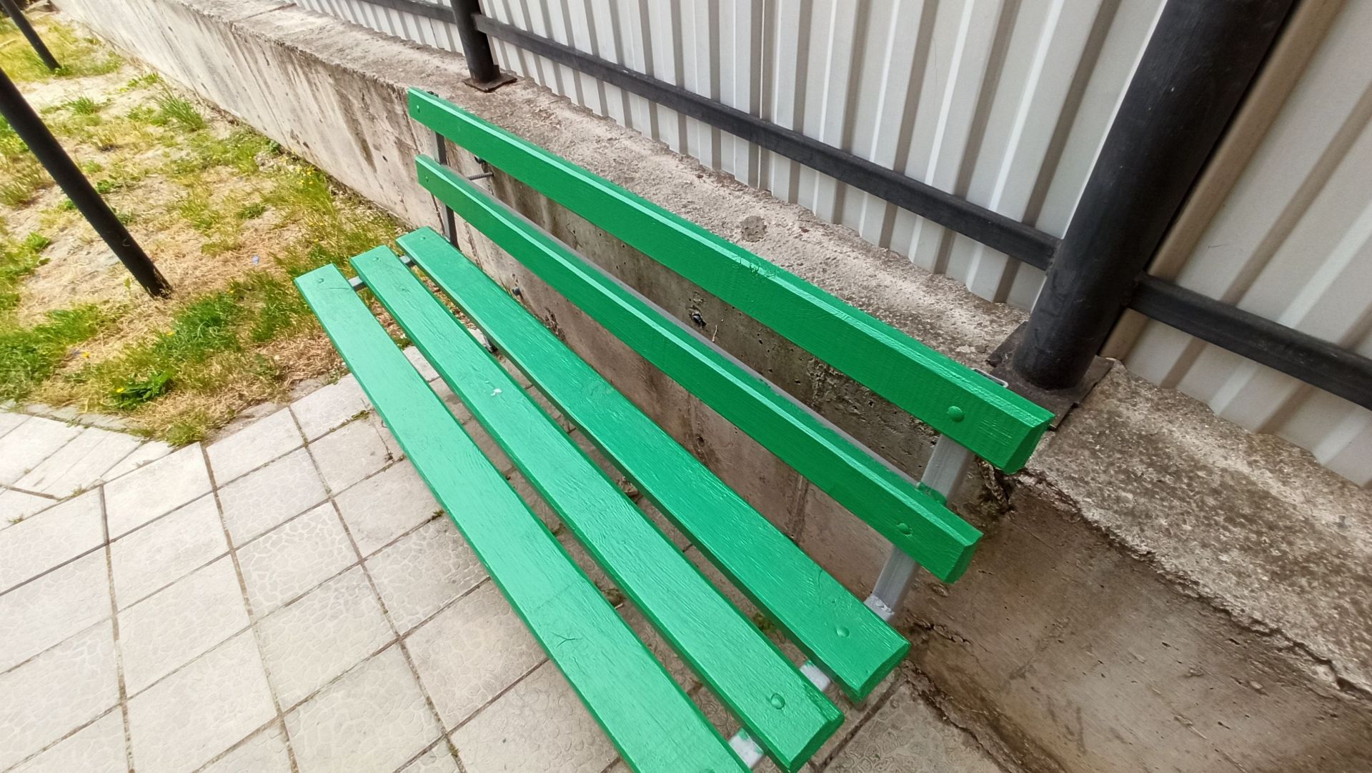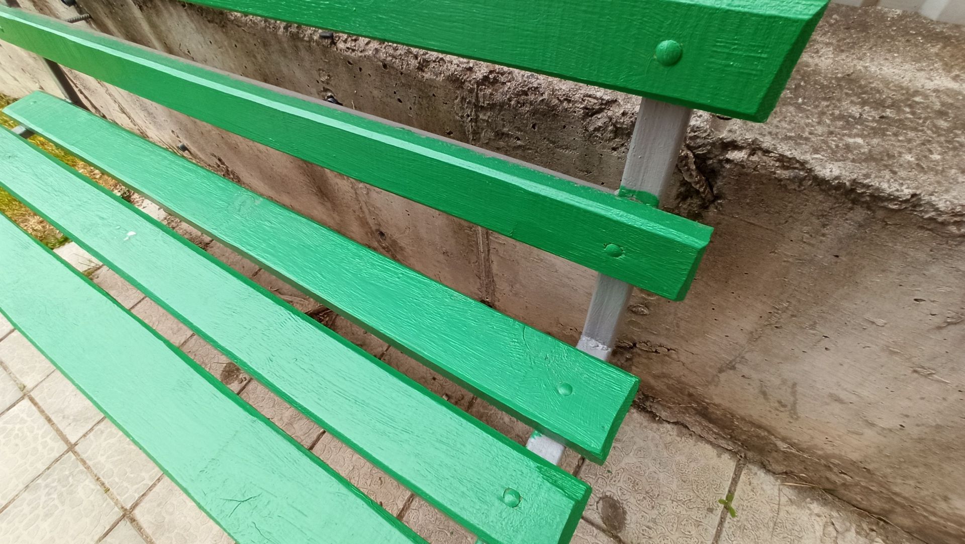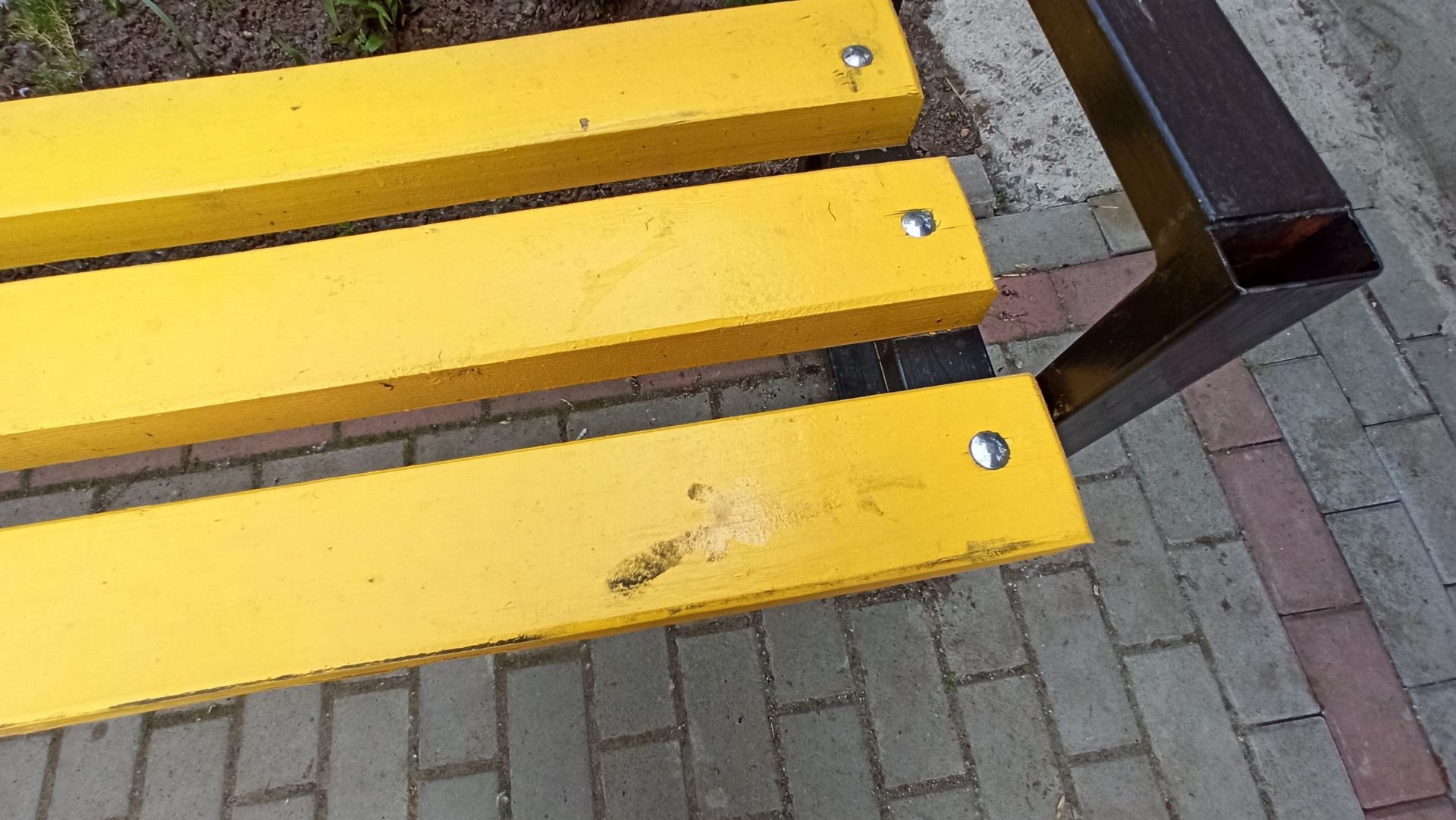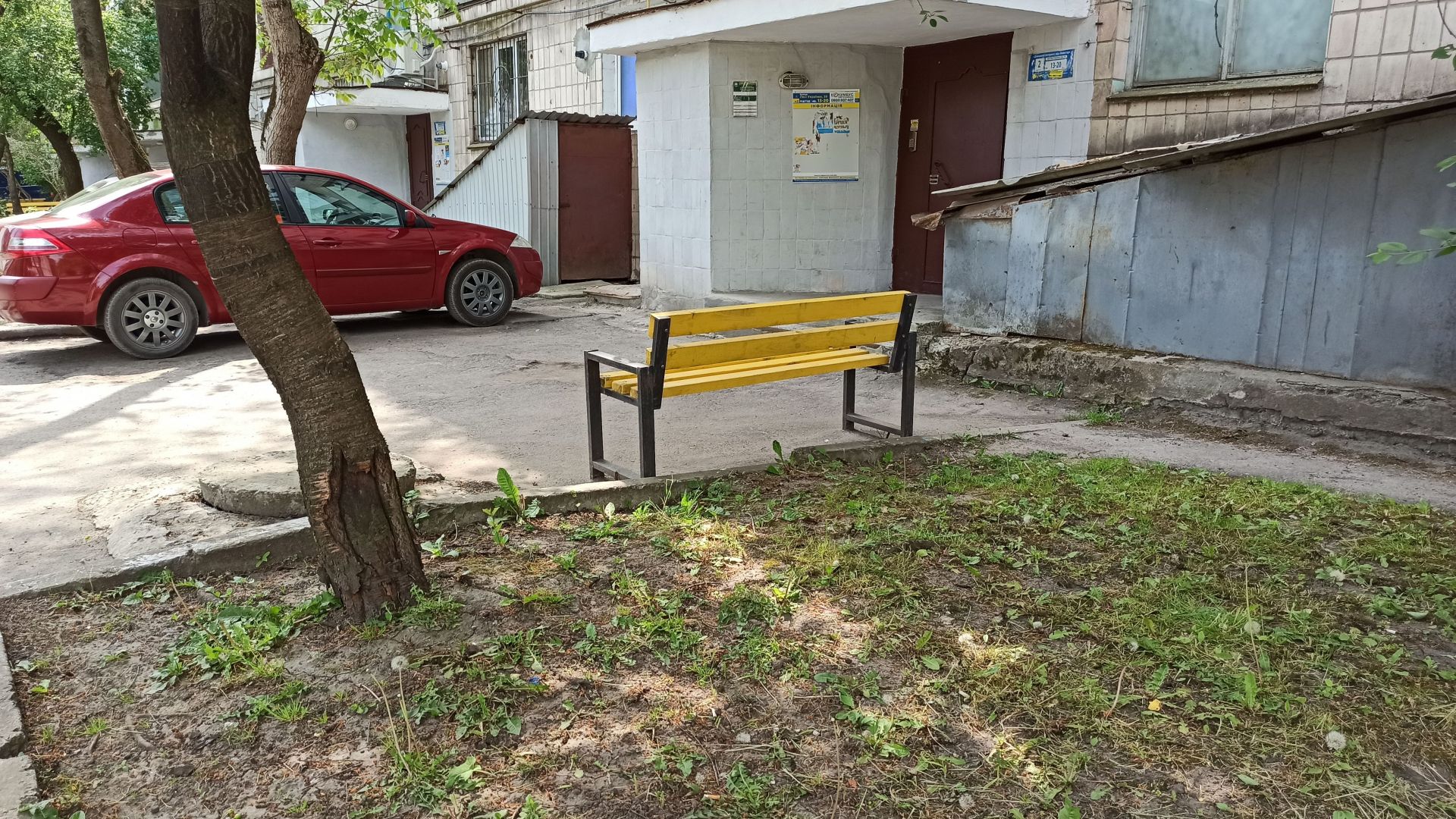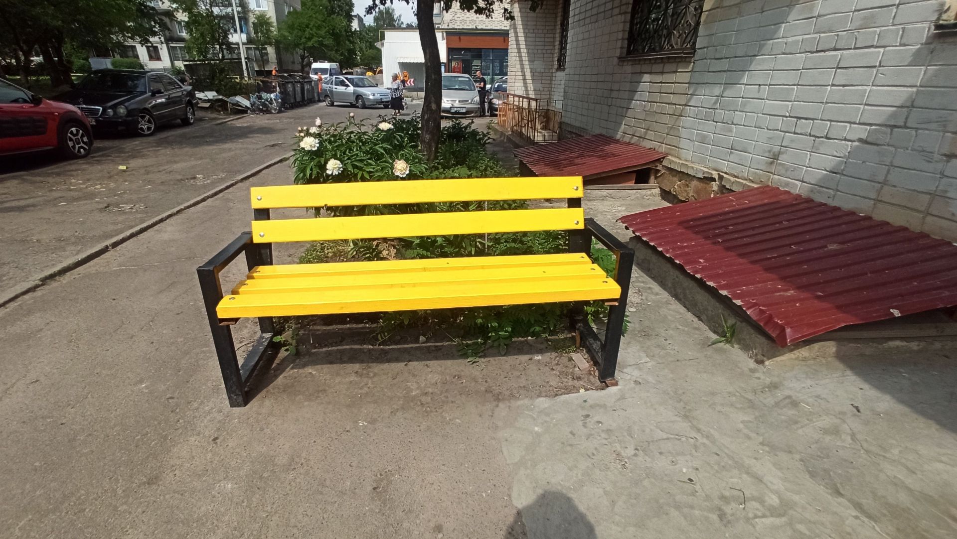 На території будинку, що на Лесі Українки, 35, наразі стоять ще чотири нові лавочки – біля першого, другого, третього і четвертого під’їздів. Вони в ідеальному стані, але на одній була пляма від фарби.