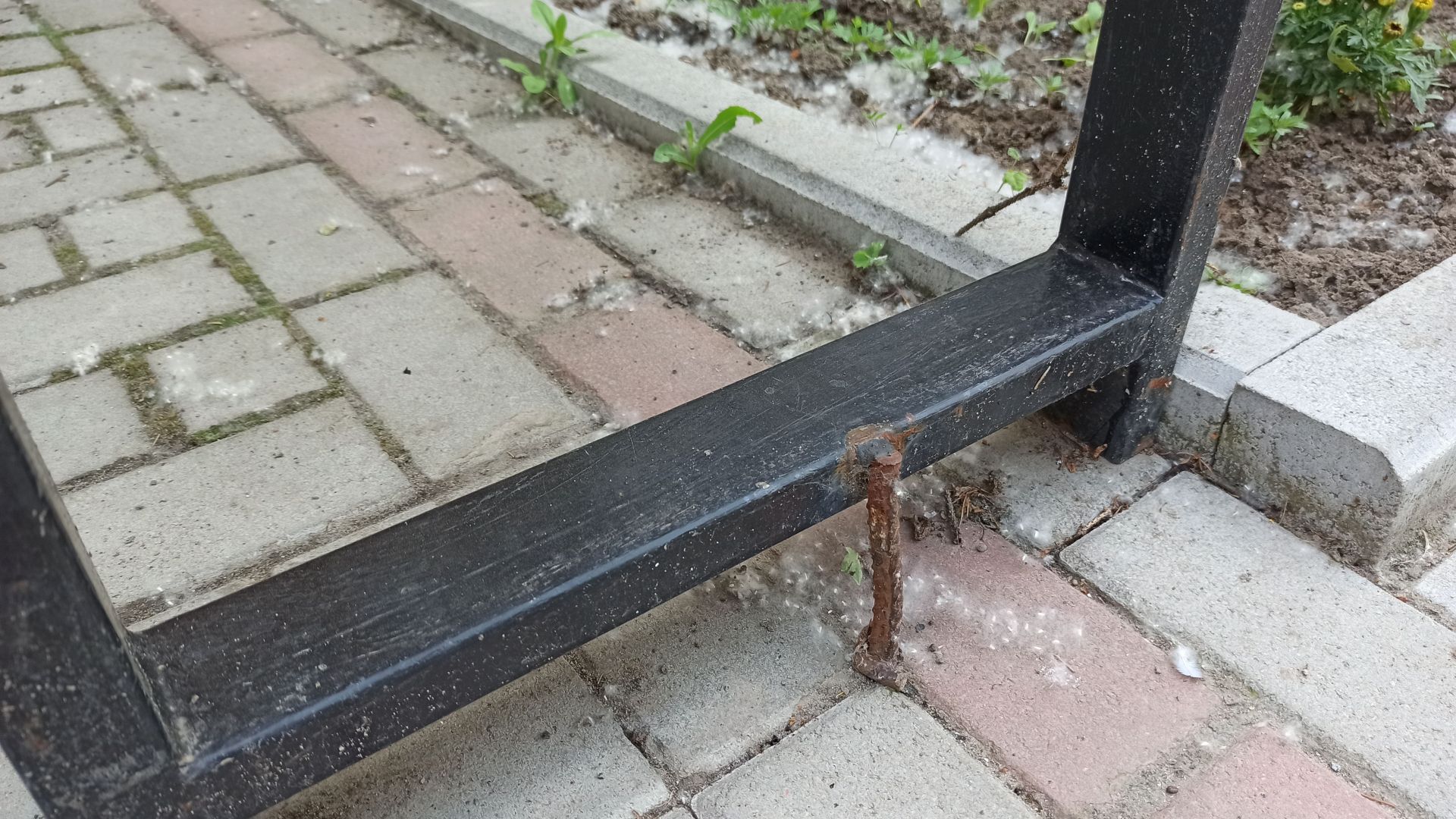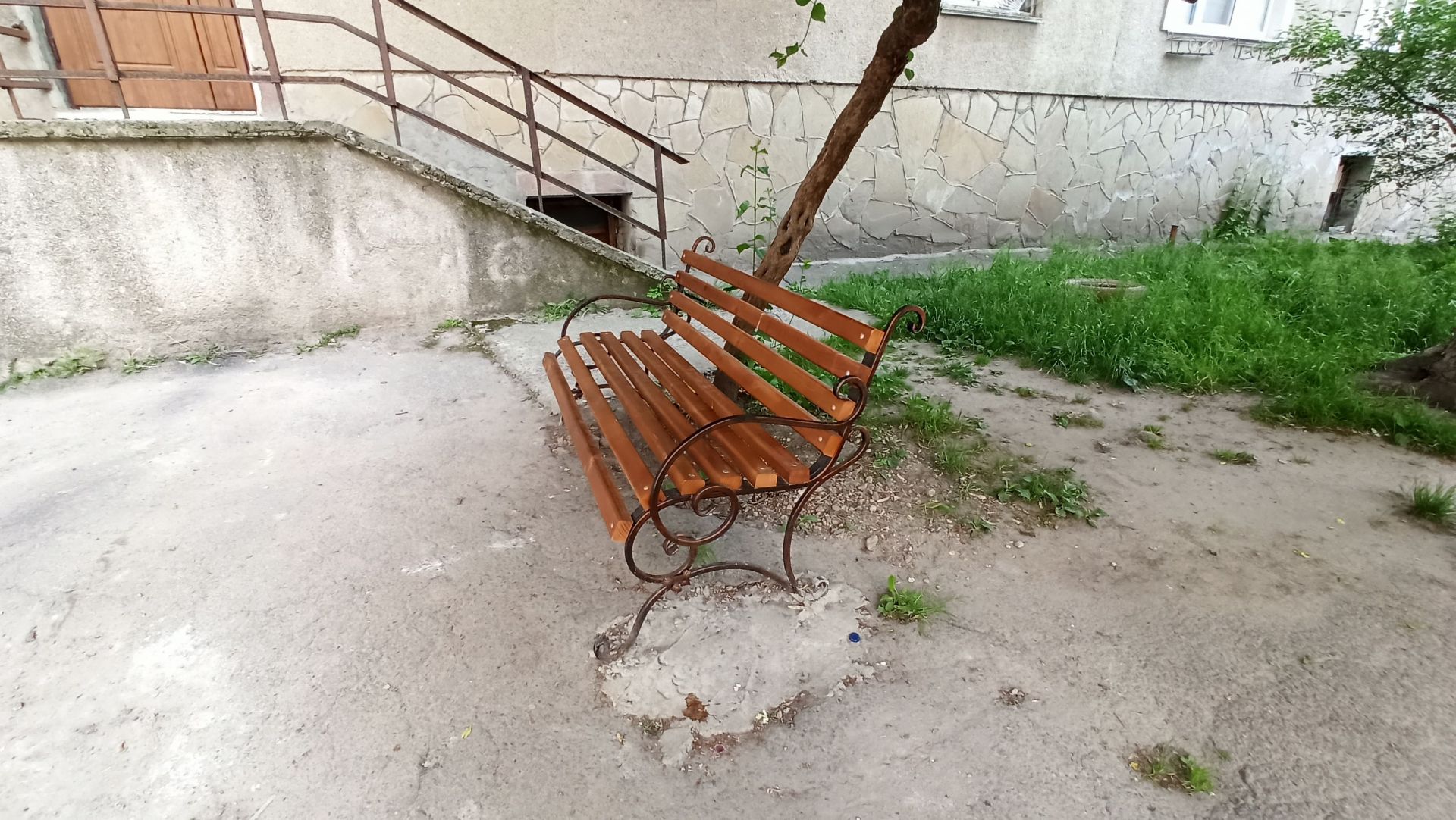 Наша журналістка обійшла кілька рандомних лавок за вказаними адресами, аби подивитись, як вони виглядають. Лавку на Медовій,3. Її встановили біля другого під’їзду. Відразу помітно, що це зробили не так давно, адже видніються сліди цементу, яким укріпили опору. Лавка дерев’яна, з фігурними кованими елементами. Вона полакована і на ній відсутні будь-які дефекти.