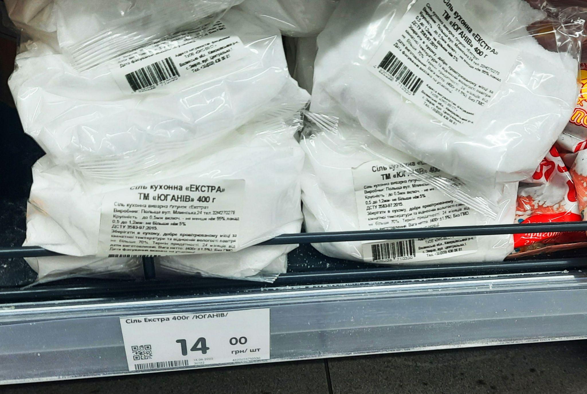Відтак після огляду п’яти торговельних мереж можемо констатувати, що сіль була в чотирьох з них у наявності. Найдешевші варіанти обійдуться менше, ніж в 20 гривень (19.45) за кіло, або трошки дорожче 20 гривень (22). Найдорожчий варіант коштував 92 гривні за кілограм, але його і не було в наявності.