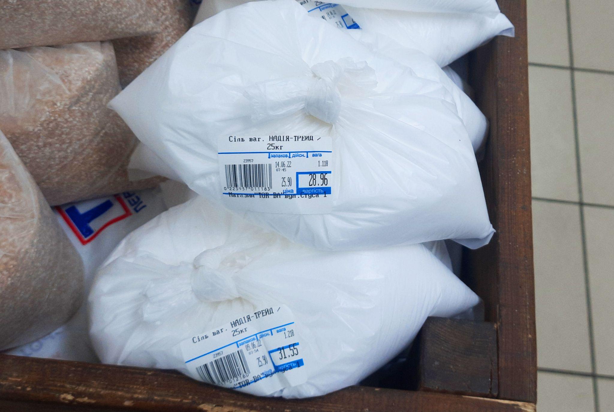 У цьому складі-маркеті сіль також самостійно розсипана по пакетах. Жодної інформації про країну походження солі на них. Працівники магазину запевняють, що сіль привезена з Польщі. Вартість кілограму солі – 25.90 гривень.