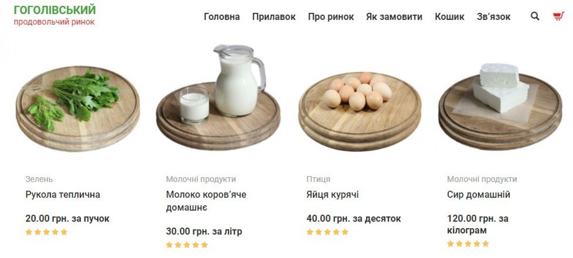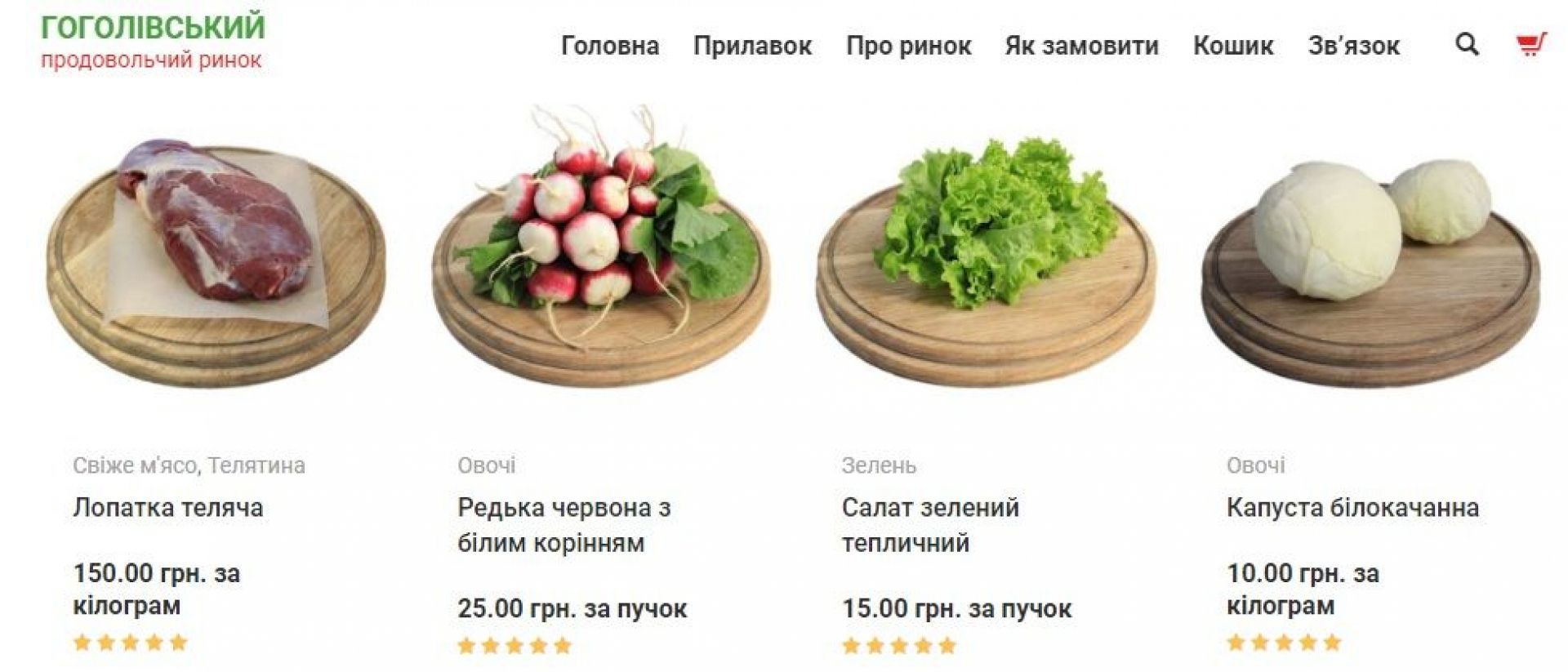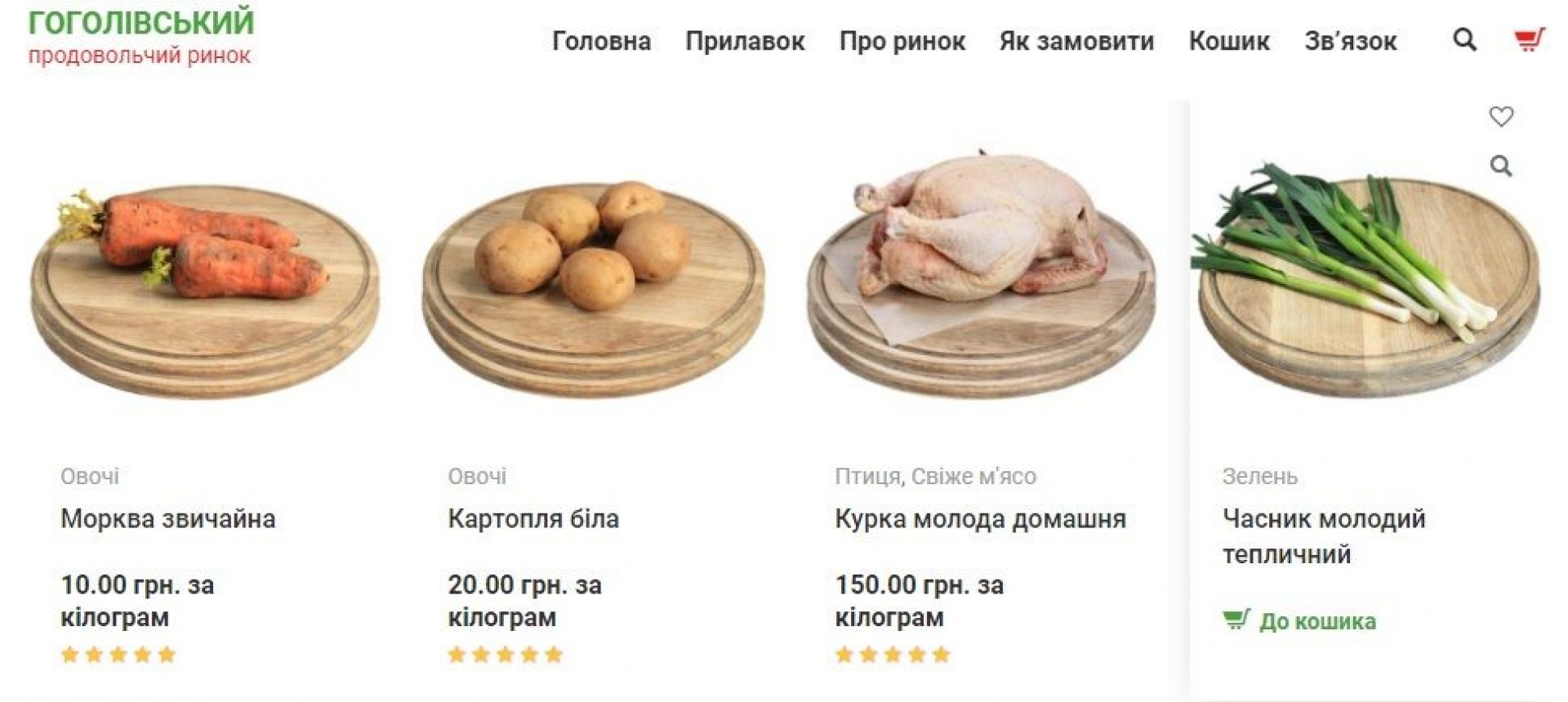 Сайт Гоголівського ринку в селі Гоголів, що на Київщині, починає приймати замовлення з 4 травня.