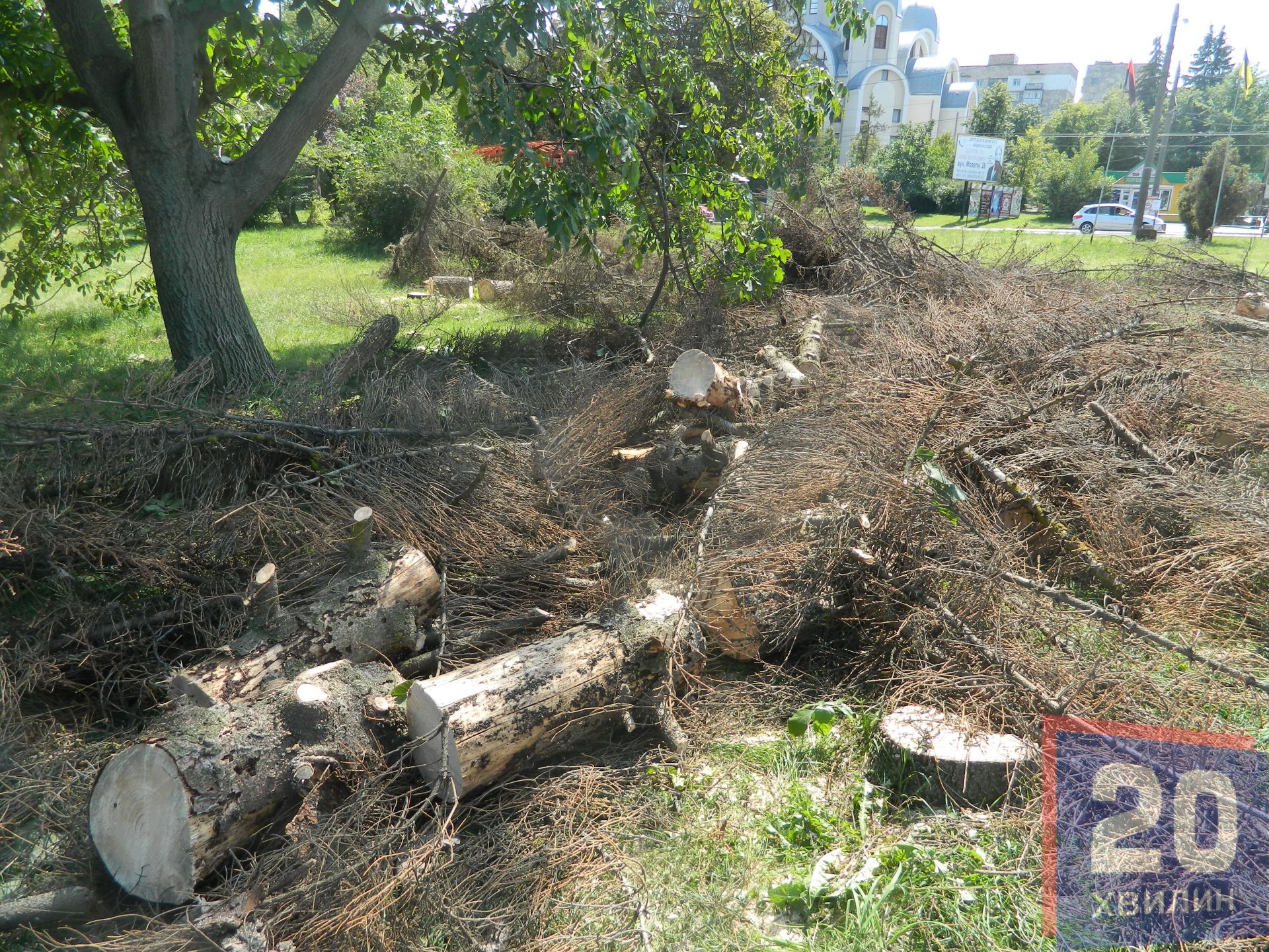 Небайдужі жителі міста неодноразово піднімали питання вирізки дерев у скверах та парках міста. Цього разу обурення викликала чергова вирізка дерев у зеленій зоні біля парку Нацвідродження, що поблизу літака. Зокрема тернополяни у соцмережах пишуть, що там комунальники зрізають ті ялинки, які всохлись “завдяки” спочатку аномальній зимі, потім - аномальному літу і жартома кажуть, що не обійшлось без аномального мера.
