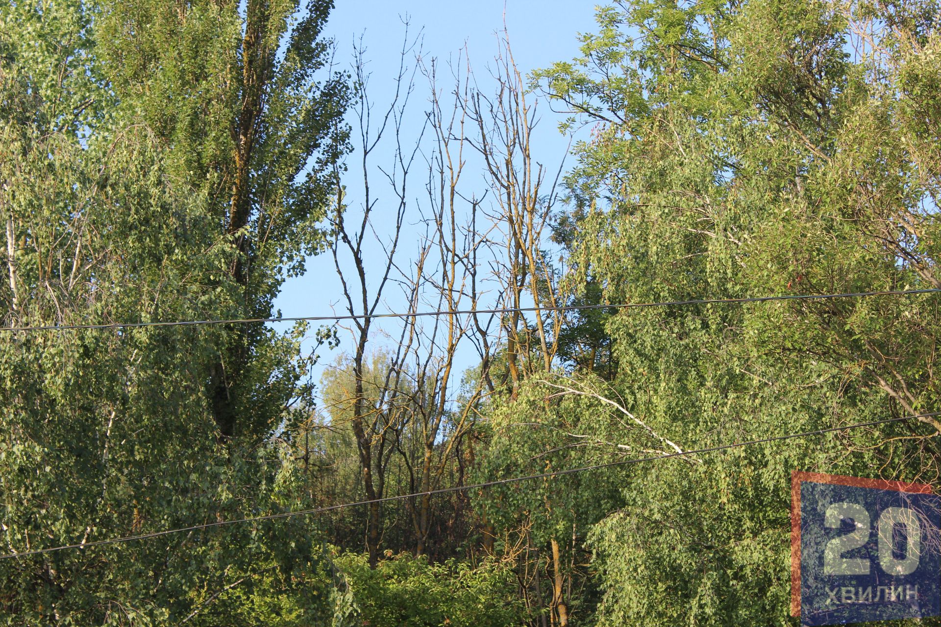 - У місті на окремих ділянках масово всихають дерева. "Зеленбуд" не гає часу та швидко вирізає сухостій.
