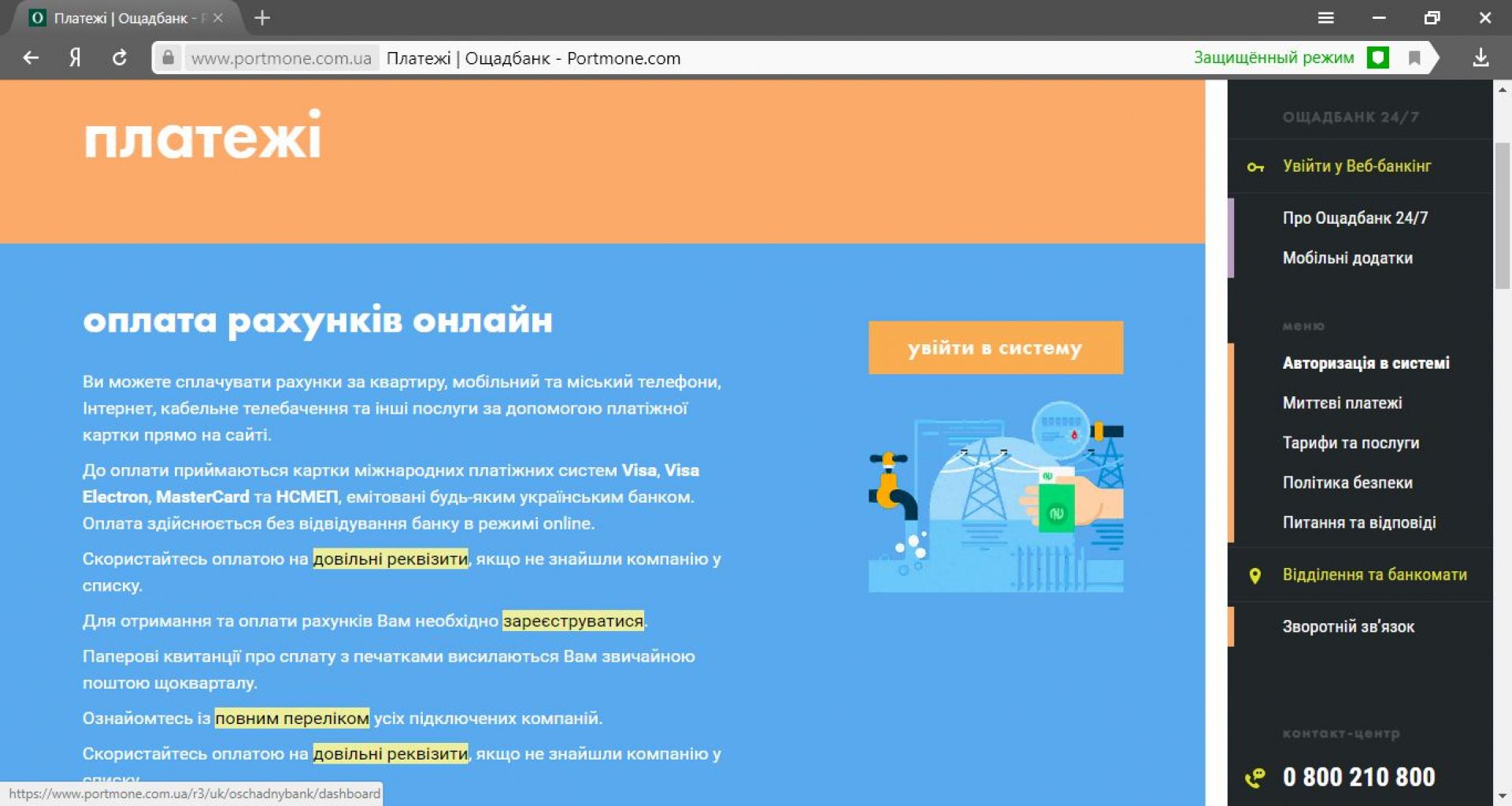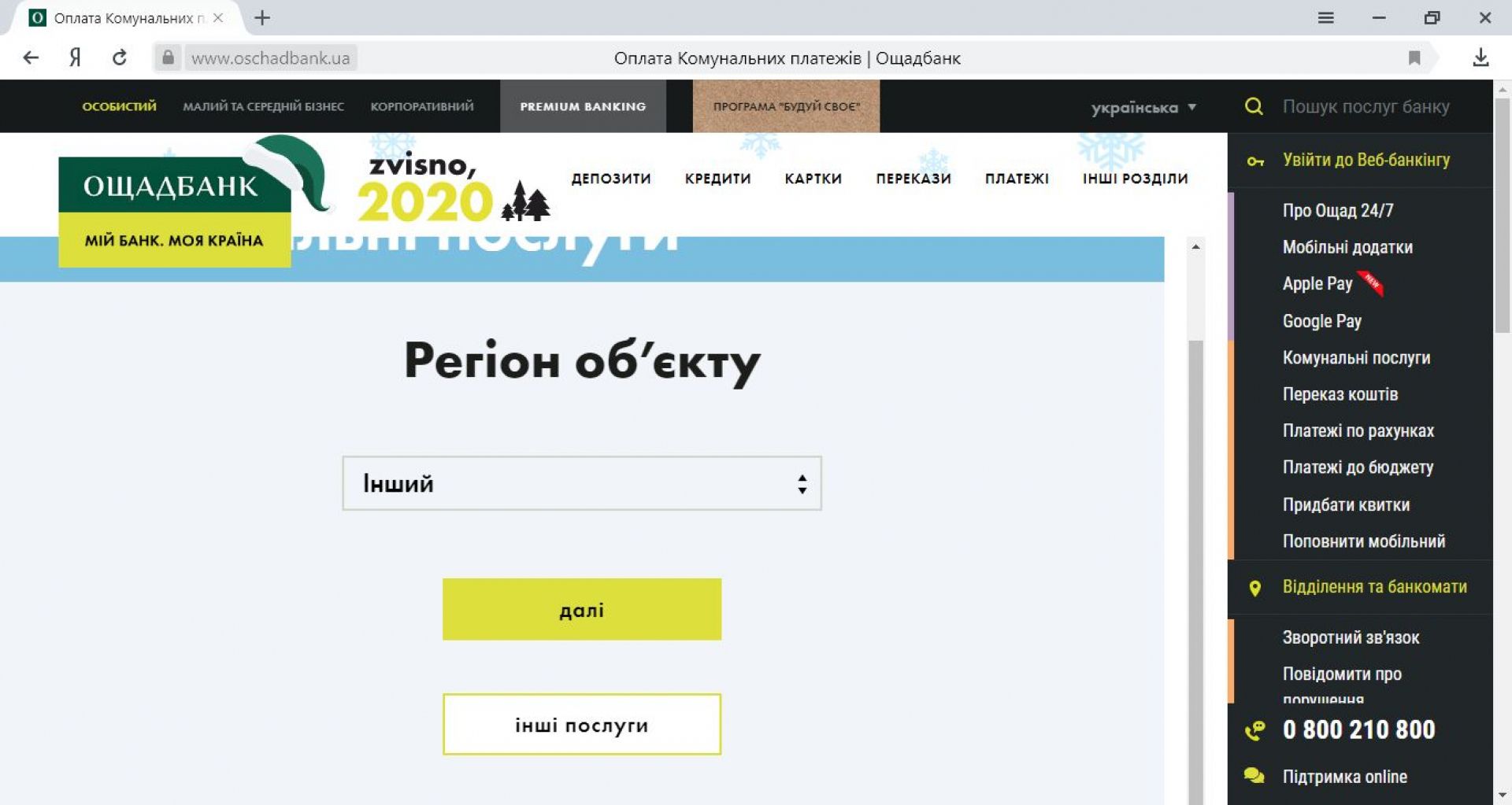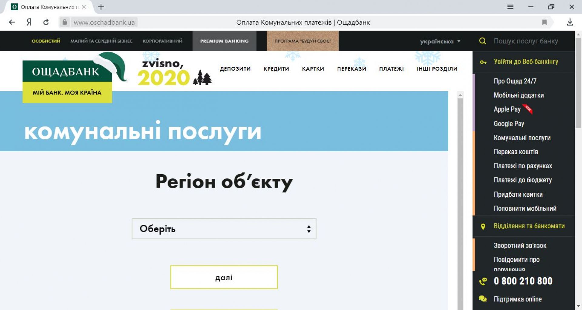 Якщо ви користуєтесь послугами «Ощадбанку», не обов’язково йти у найближче відділення. Достатньо увійти в онлайн-кабінет та зайти розділ «Комунальні послуги». Ви обираєте регіон, авторизуєтесь в системі і починаєте проводити оплату потрібних послуг. Одна з переваг користування онлайн-банкінгом – можливість виставити регулярний платіж, тоді вам не доведеться кожного місяця самостійно проводити платежі, хоча це займає всього кілька хвилин. Якщо у вас з’являється заборгованість – система зможе автоматично оплатити її коштами, які знаходяться на вибраній карті. Проводити платежі можна без комісії, на відміну від оплати рахунків на касі у відділенні банку.