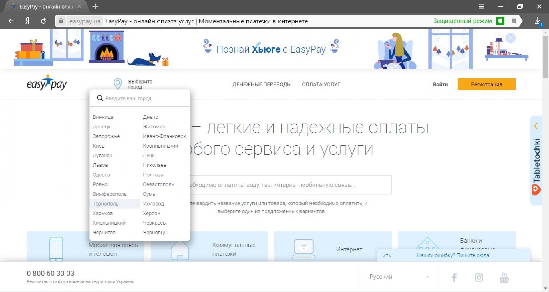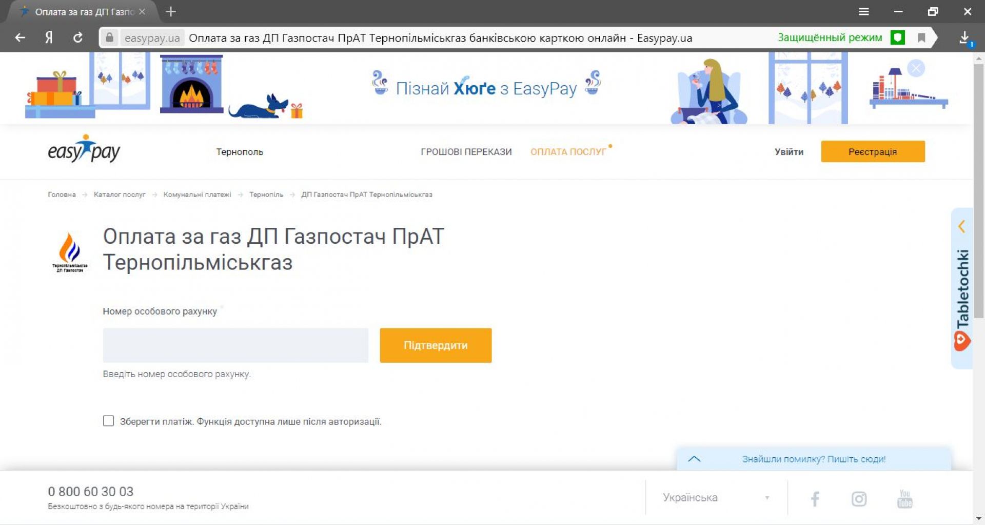 Ще одна зручна онлайн-платформа для оплати комуналки – EasyPay. Вам потрібно обрати ваш регіон і ви побачите перелік підприємств, за послуги яких ви можете сплатити. Процедура майже така ж, як і в попередньому сервісі. Ви обираєте підприємство, вводите свої дані, номер рахунку, адресу, рік та місяць, заборгованість, яку хочете оплатити і суму, що варто перерахувати. Далі вводите свої банківські реквізити і підтверджуєте платіж. Це займає всього кілька хвилин.