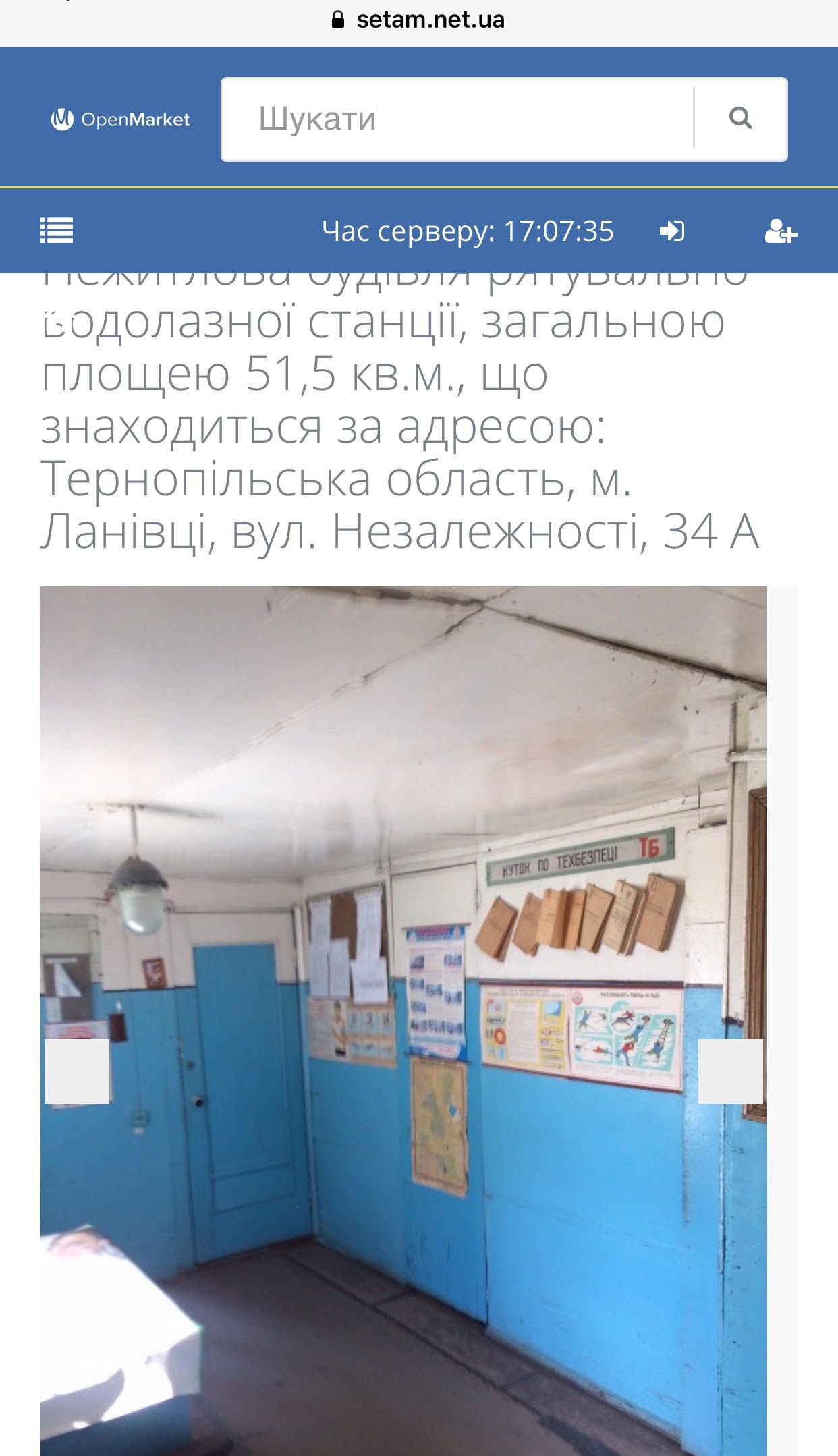 Нежитлову будівлю рятувально-водолазної станції загальною площею 51,5 кв.м. у Ланівцях також продають за Системою електронних торгів за 83 520 грн, як мінімум. Крок аукціону – 2 505 грн 60 коп. Проведуть аукціон 06 вересня. У характеристиці лоту зазначають: фундаменти – бутові, стіни і перегородки –дерев'яні, перекриття – дерев'яне, дах – шиферна, двері – дерев'яні, вікна –