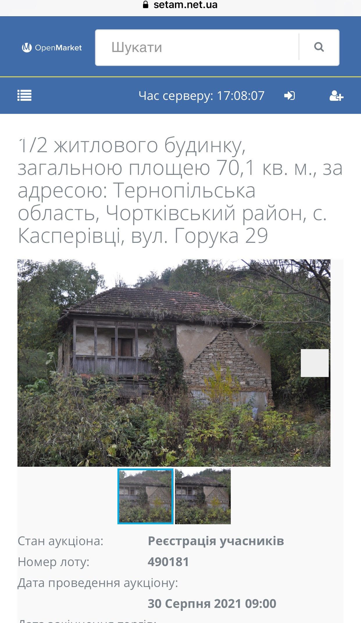 У системі СЕТАМ продають половину будинку, площею 70 квадратів у с.Касперівці Чортківського району. Тобто можете розраховувати на 41,5 квадрат.
