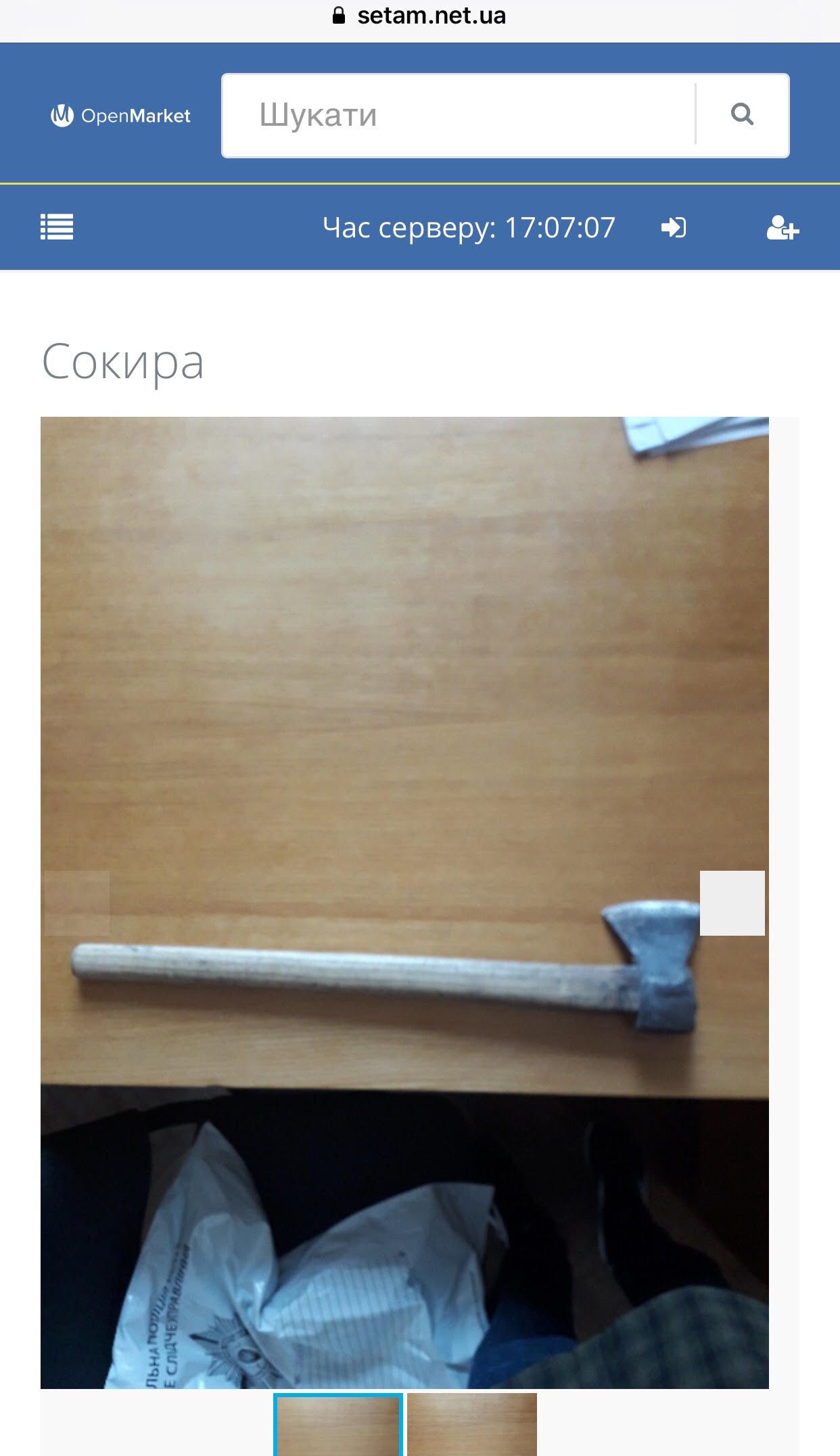 Мабуть, один із найдивніших лотів в області. Стартова ціна сокири 20 грн. Крок аукціону – гривня. Сокиру розіграють 30 серпня у Бережанах.