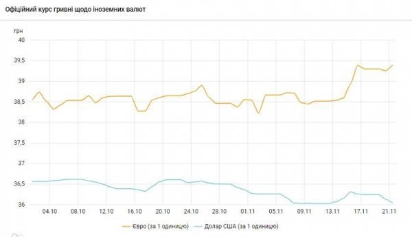 Курс валют на 21 листопада від НБУ