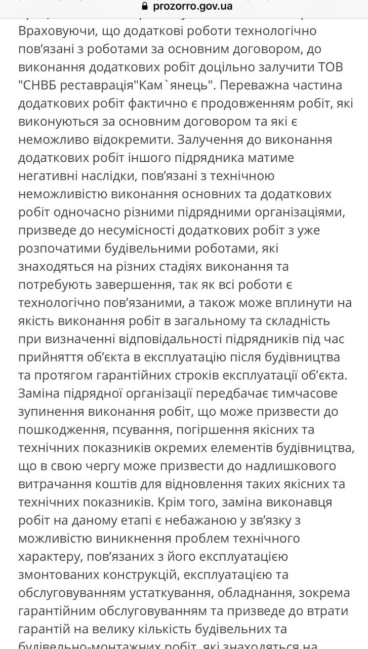 Таким чином, угоду на додаткові роботи, вартістю 7 млн з «копійками» знову отримало ТОВ «СНВБ реставрація Кам’янець».
