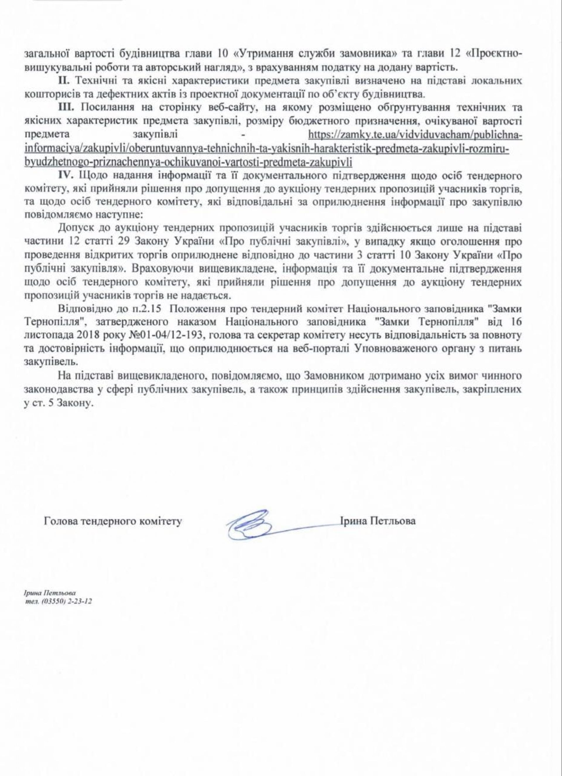 Дані «переговори» нацзаповідник обгрунтував тим, що у них виникла необхідність закупівлі додаткових аналогічних робіт чи послуг у того самого учасника, що передбачені в основному договорі про закупівлю, який укладений за результатами проведення тендера та/або здійснюється протягом трьох років після укладення договору про закупівлю і загальна вартість таких робіт чи послуг не перевищує 50 відсотків ціни основного договору про закупівлю.
