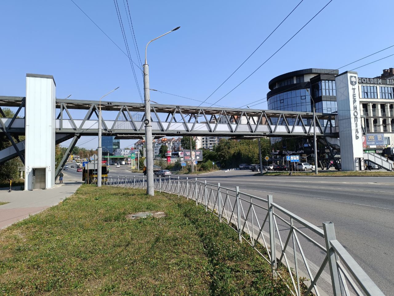 Надземний пішохідний перехід на вулиці 15 квітня. У якому стані конструкція, яку встановили у 2020 році як «приклад державно-приватного партнерства та ведення соціально-відповідального бізнесу» у Тернополі? «20 хвилин» перевірили.