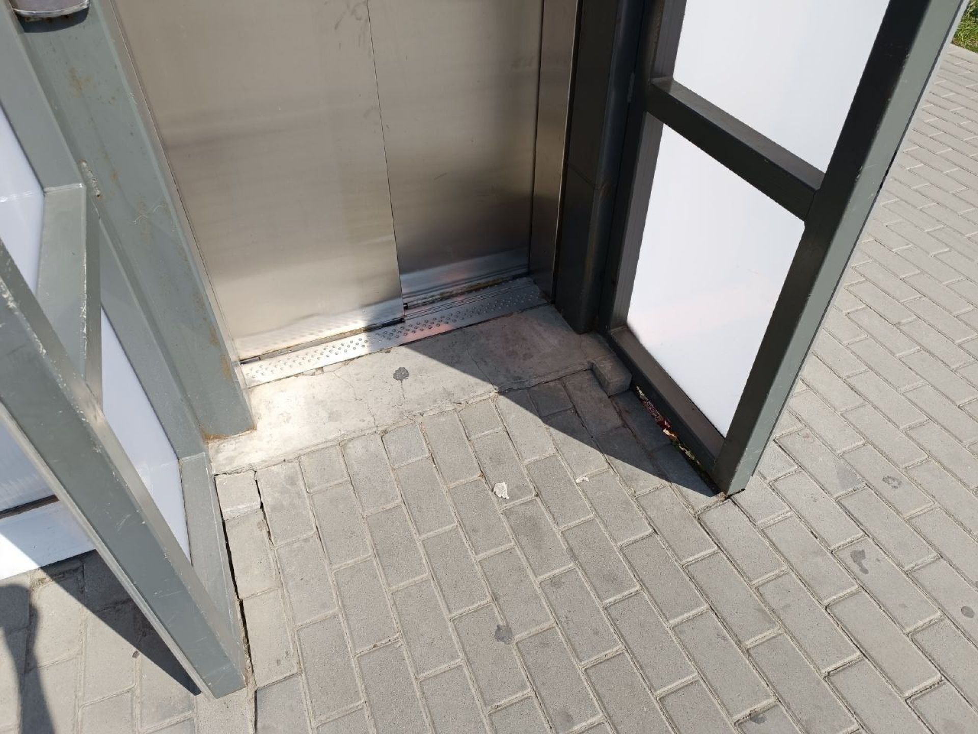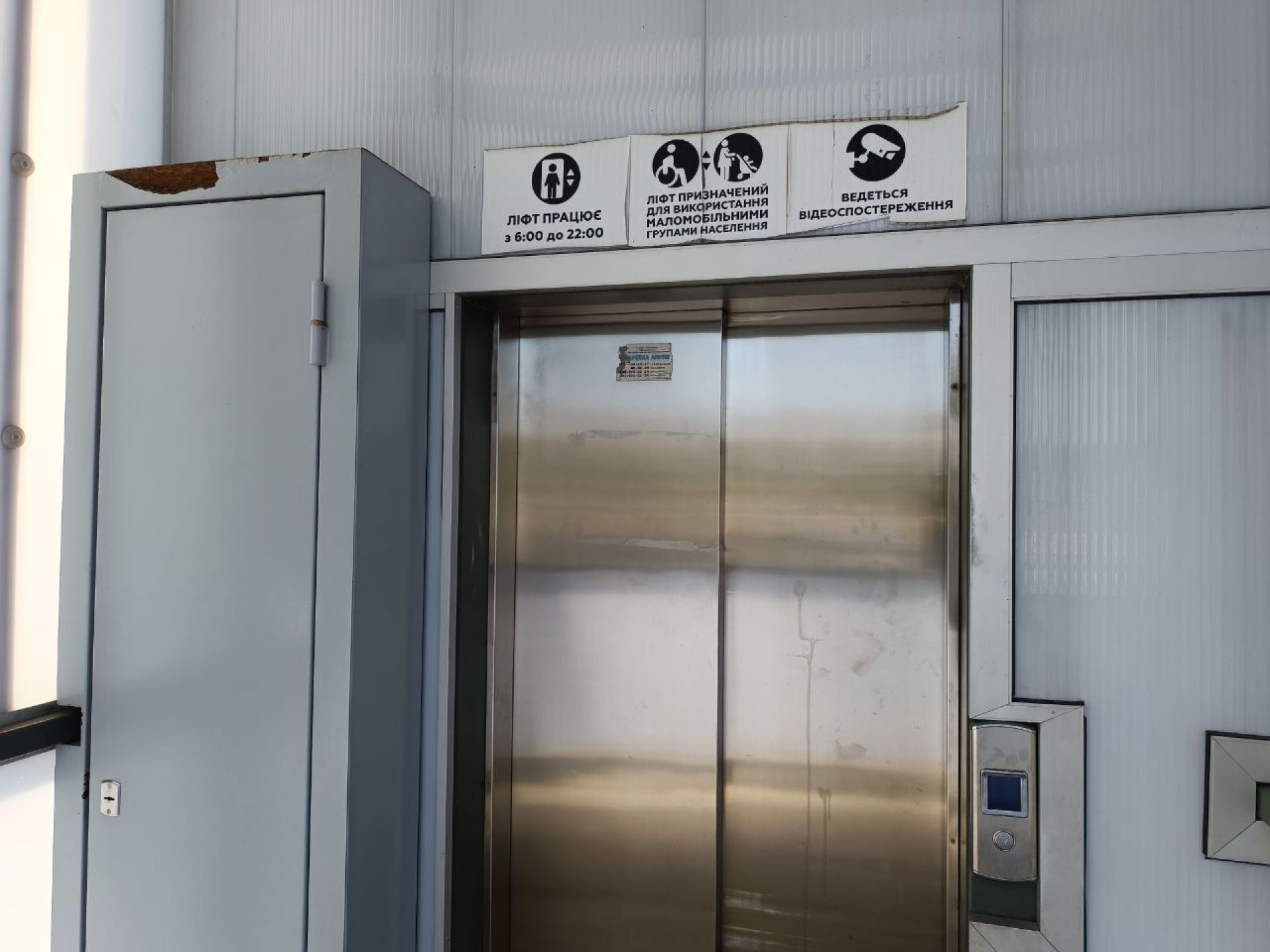 Сюди ведуть сходи а також по одному ліфту із кожного боку дороги. 3 вересня, коли журналіст «20 хвилин» проводив зйомку, ліфти були справні. Відповідно до встановлених тут табличок, вони мають працювати з 06 години ранку до 22 години вечора. Всередині досить чисто, є попередження про відеоспостереження, а також, що ліфти призначені «для використання маломобільними групами населення».
