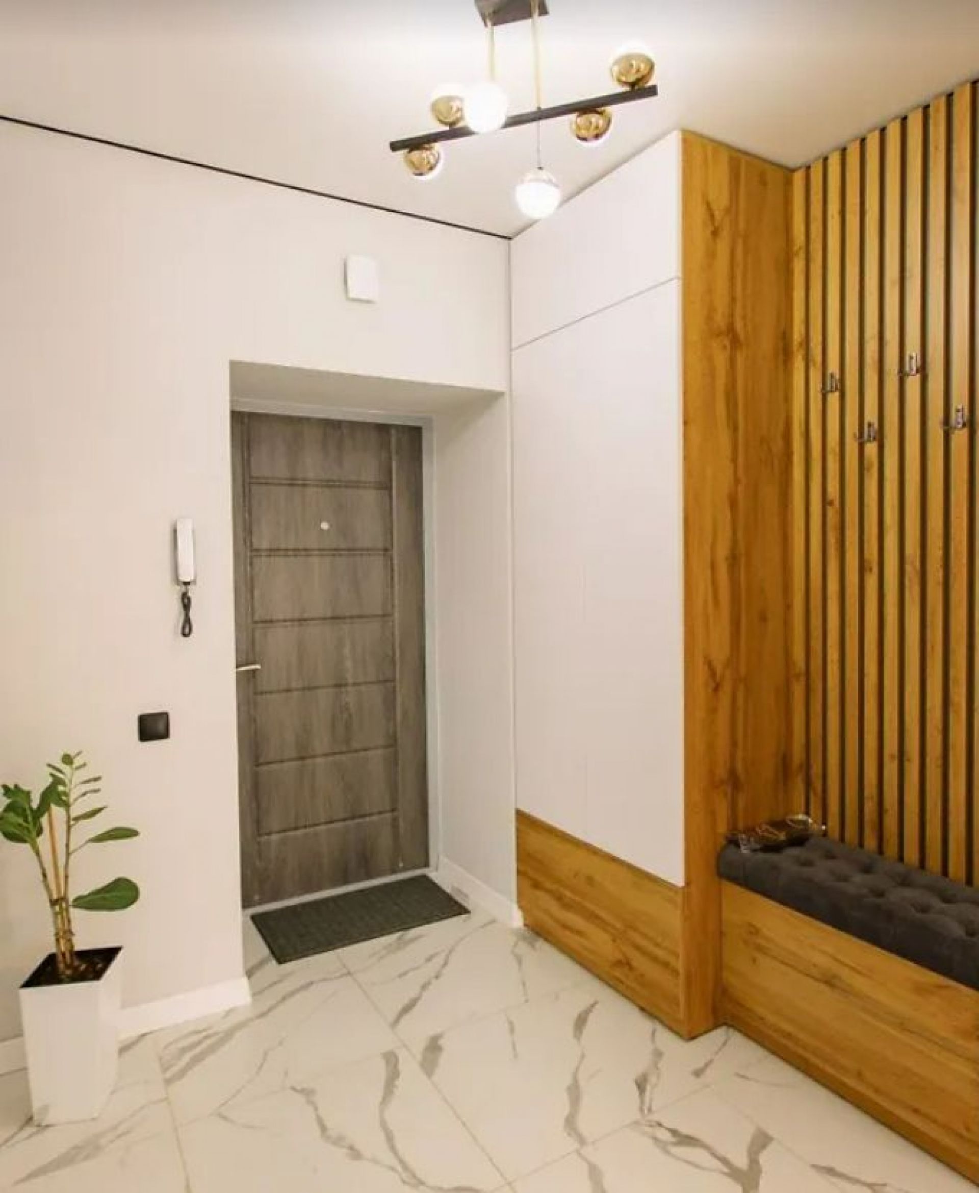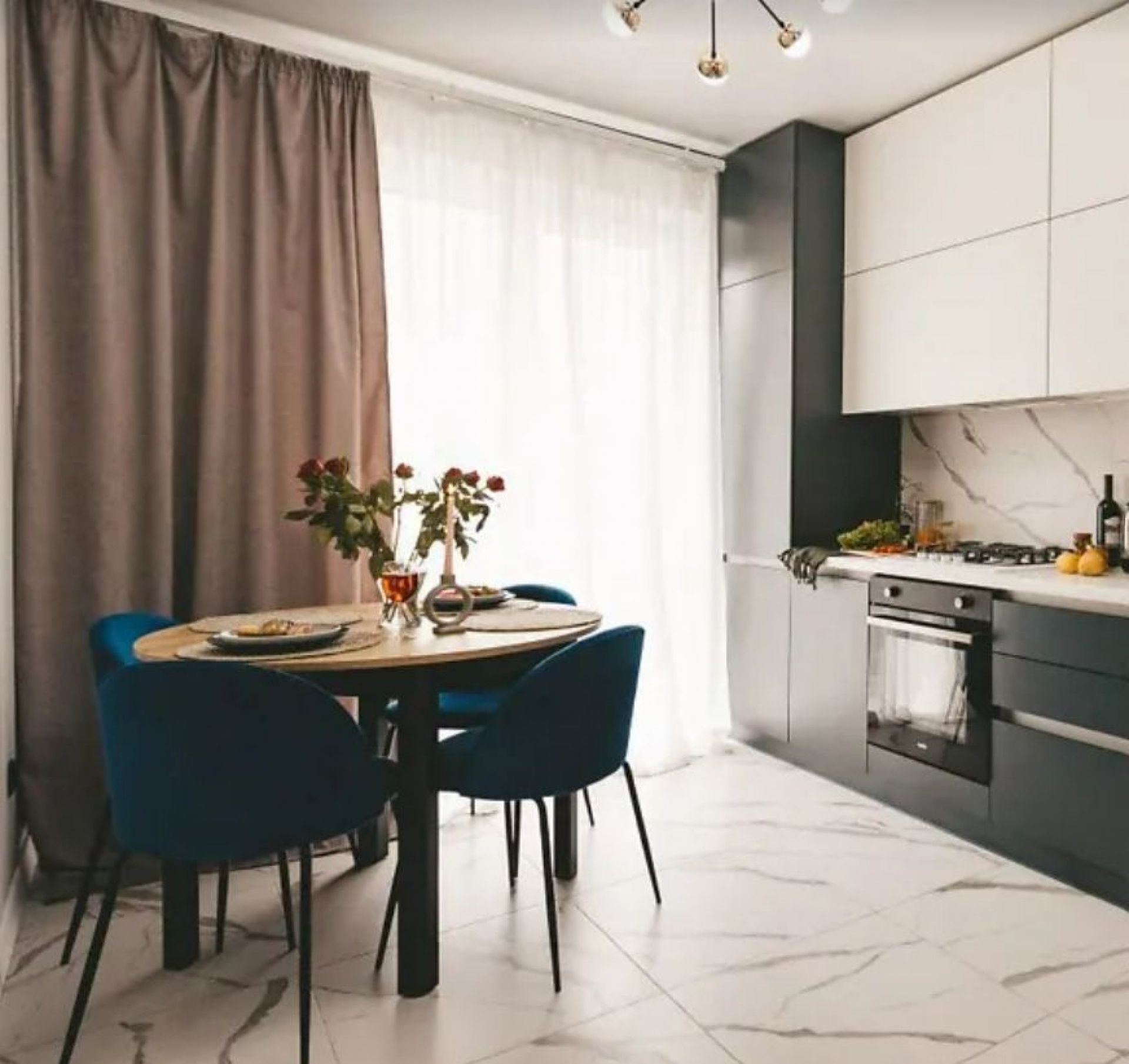15 355 гривень – квартира з євроремонтом на Оболоні. Є резервне живлення на випадок блекаутів, побутова техніка, меблі, яких вистачить для базового проживання. З родзинок – підігрів підлоги та панорамні вікна. Загальна площа – 53 м².
