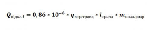 Обсяг спожитої теплової енергії на опалення приміщення з індивідуальним опаленням або окремого приміщення з транзитними мережами опалення, через яке прокладені транзитні трубопроводи внутрішньобудинкової системи опалення (Qвідкл.i) розраховується за формулою у Гкал: