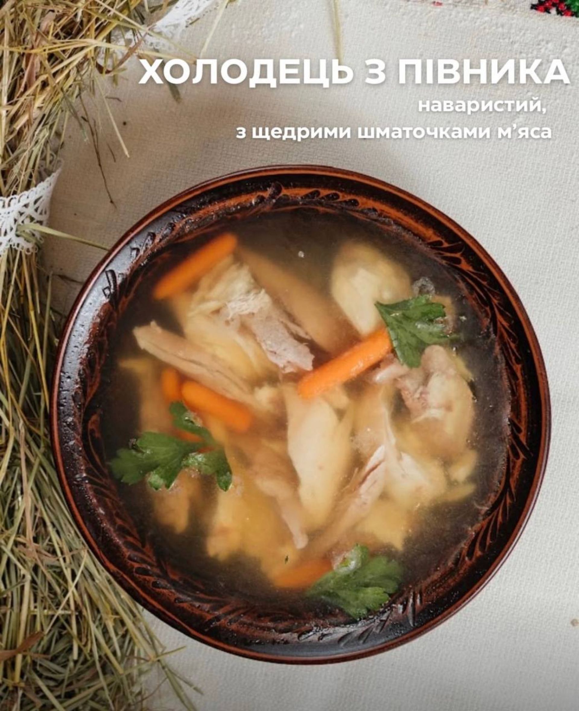 – Пропонуємо м’ясні голубці, фаршированого коропа, форель у вершковому соусі, курча у вершково-часниковому соусі. Також літр олів’є, святкову «шубу», печінковий торт, холодець із півника, оселедець з кав’яром та вінегрет з білими грибами, – зазначають у закладі.
