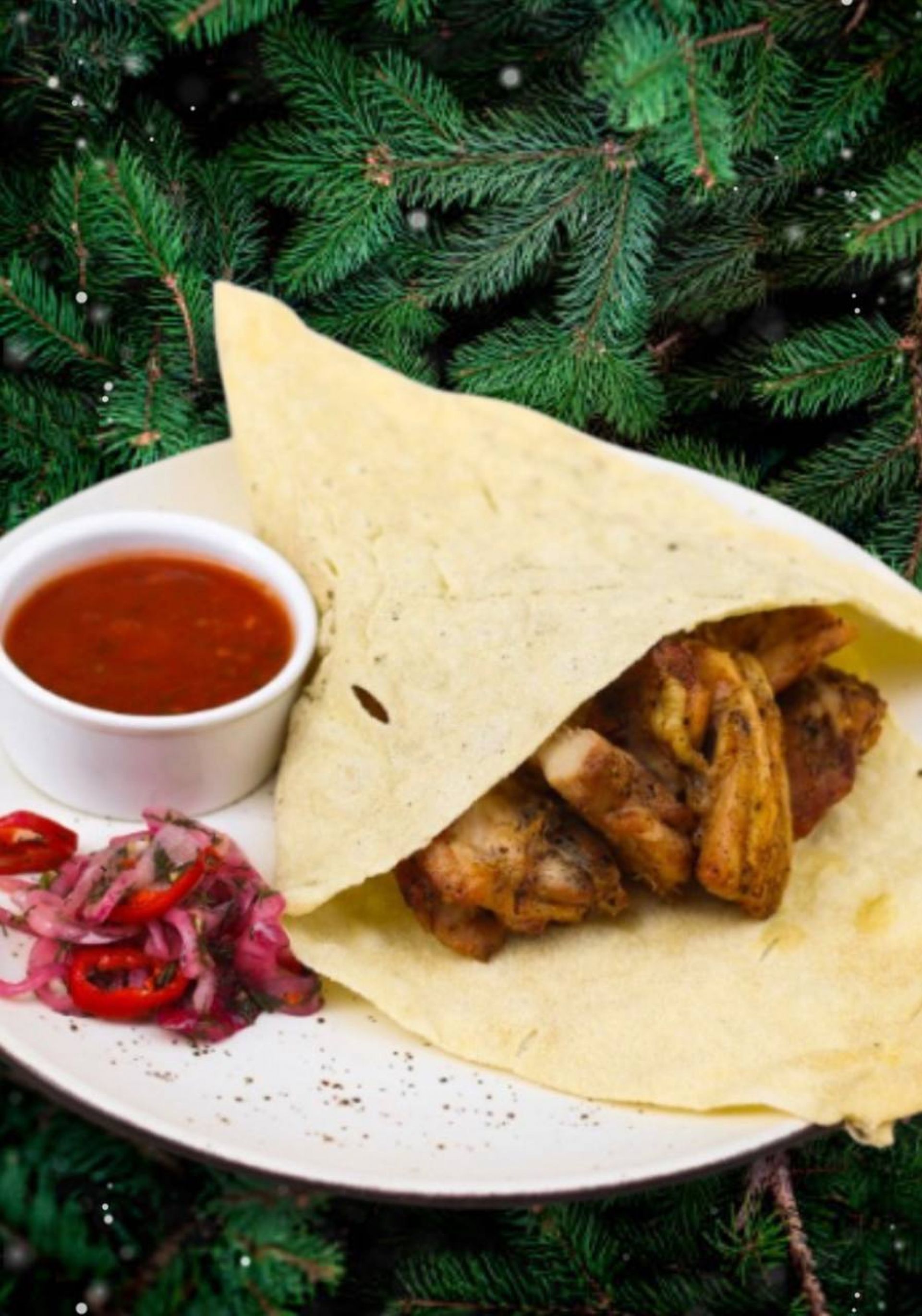 Для тернополян тут підготували новорічний сет із качкою з вишнею та яблучним чатні й м’ясним плато. Також до святкового меню входять брускети з ікрою, холодець із телятини, колекції рибних і м’ясних делікатесів, «шуба» з трьох видів риби та олів’є з пастрамі індички й крабом.