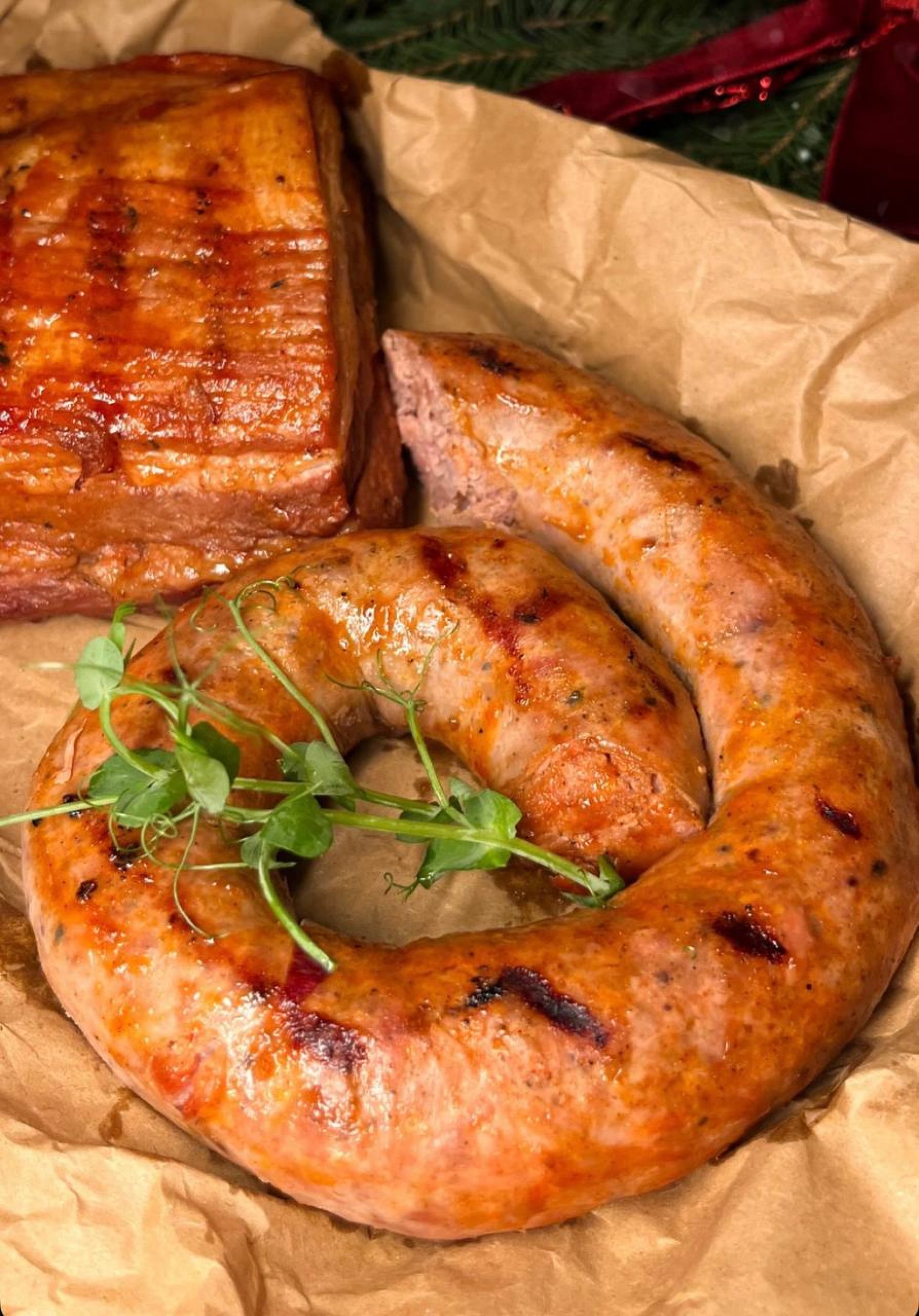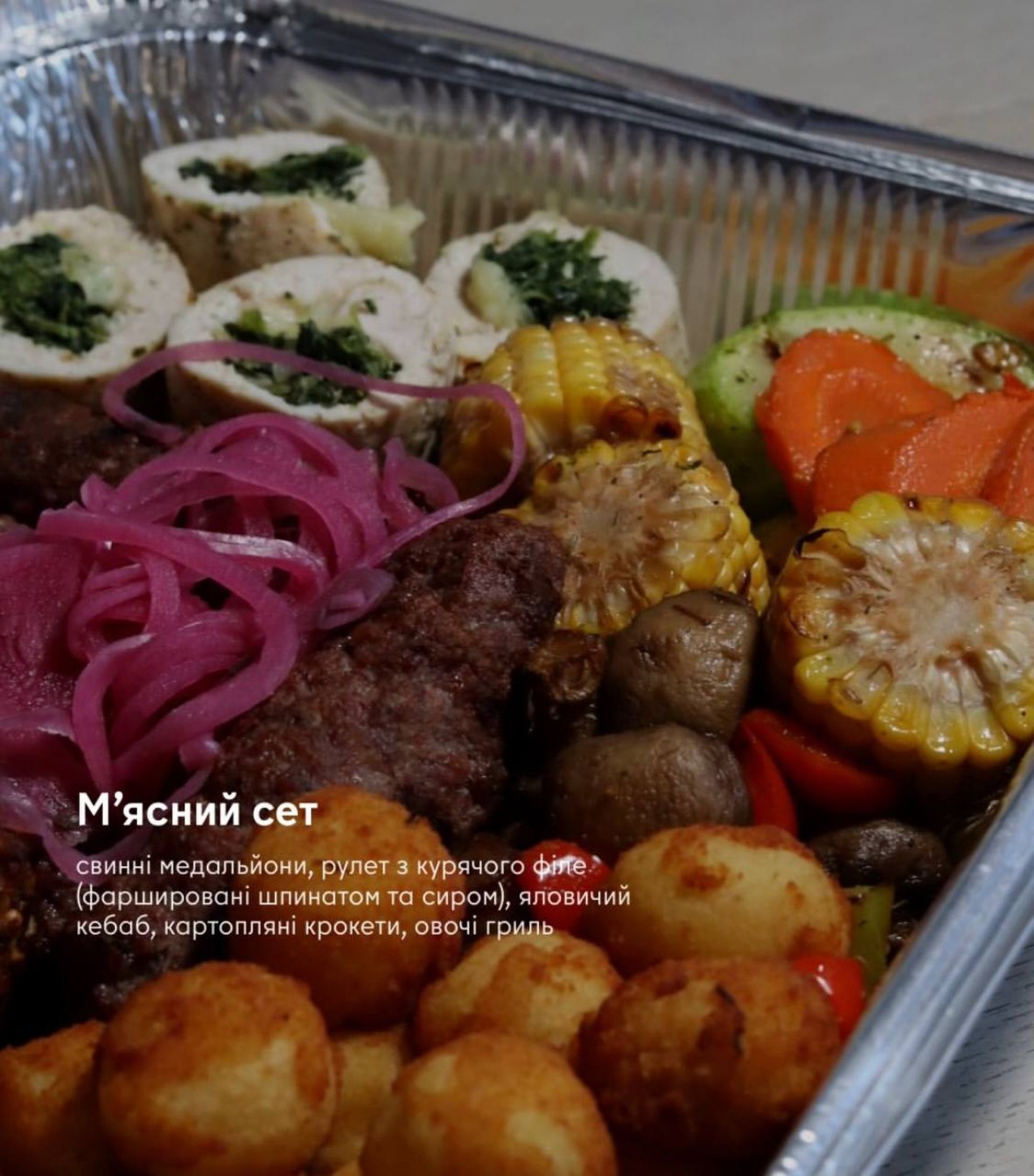 У ресторані наголошують: їхнє меню – це святкові страви, знайомі смаки та тепло, яке приїжджає до вашого дому. Тут пропонують святкове меню на шість осіб. Можна замовити як готовий сет, так і окремі страви.