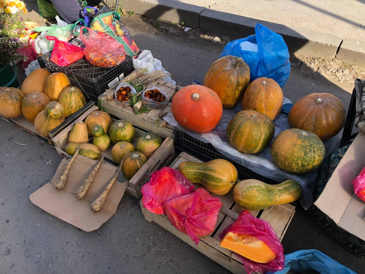 Також на стихійному ринку помітили часник, за одну штуку бабусі просять 10 гривень. А за кілограм помаранчевого гарбуза – 20 гривень.