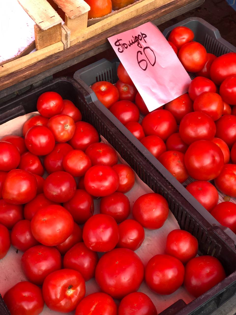 За помідори продавці ринку просять від 35 до 60 гривень. Але ті, що за 35 гривень купувати не радили б. Вони підійдуть виключно на томатний сік або для соусів.