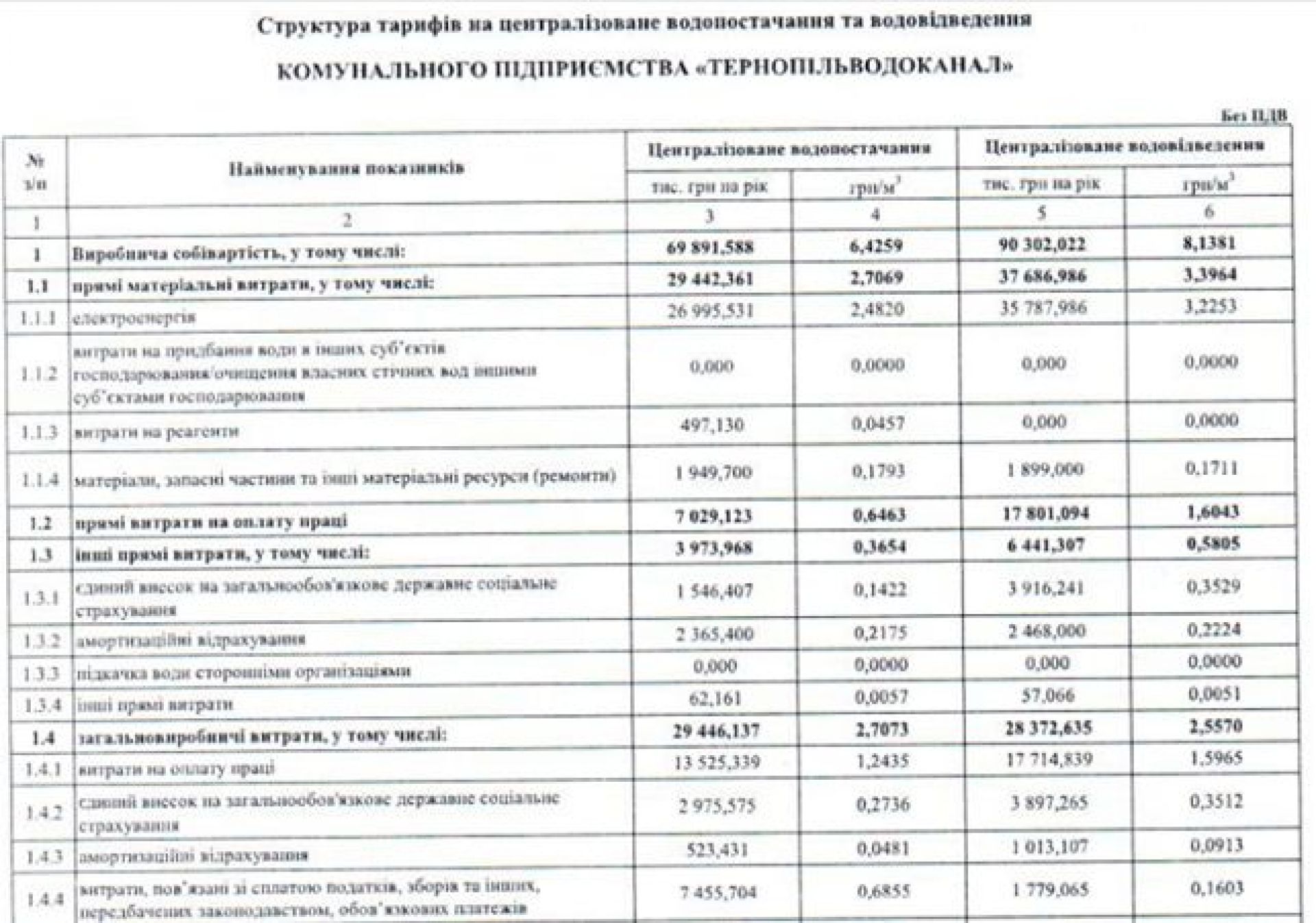 Офіційний сайт КП «Тернопільводоканал» у своїй фінансовій звітності за дев'ять місяців 2019 року повідомив про те, що витрати на оплату праці значно більші, аніж за аналогічний період попереднього року. І загалом відбувається збільшення цих витрат кожного року.