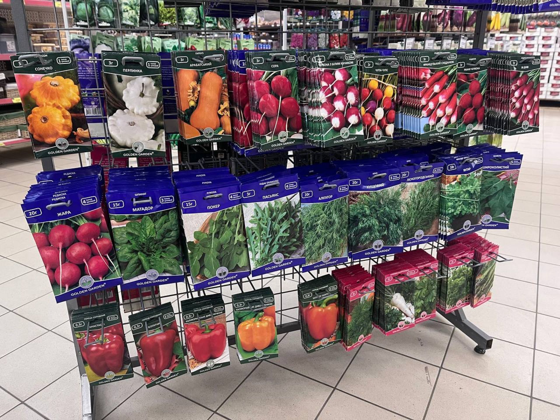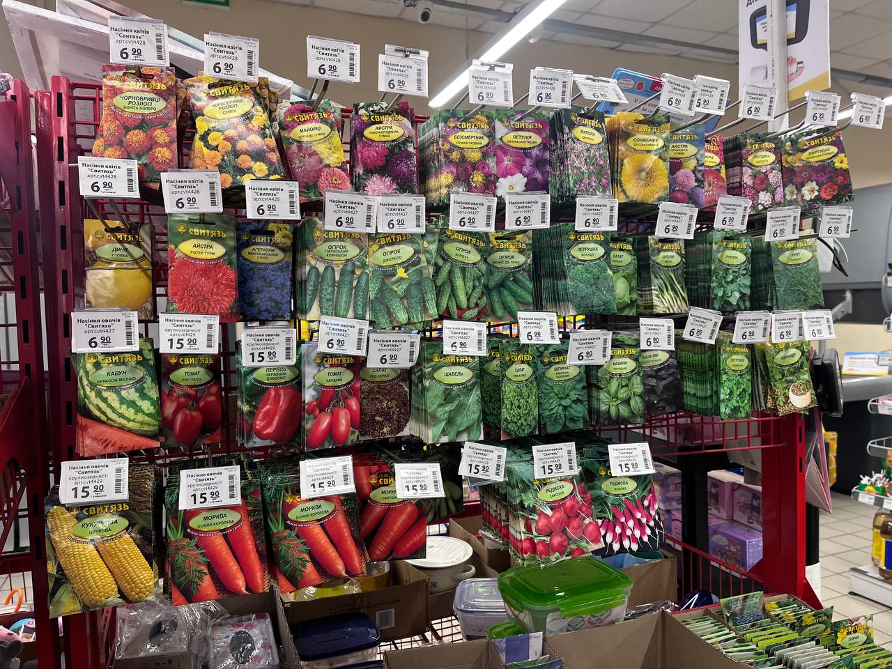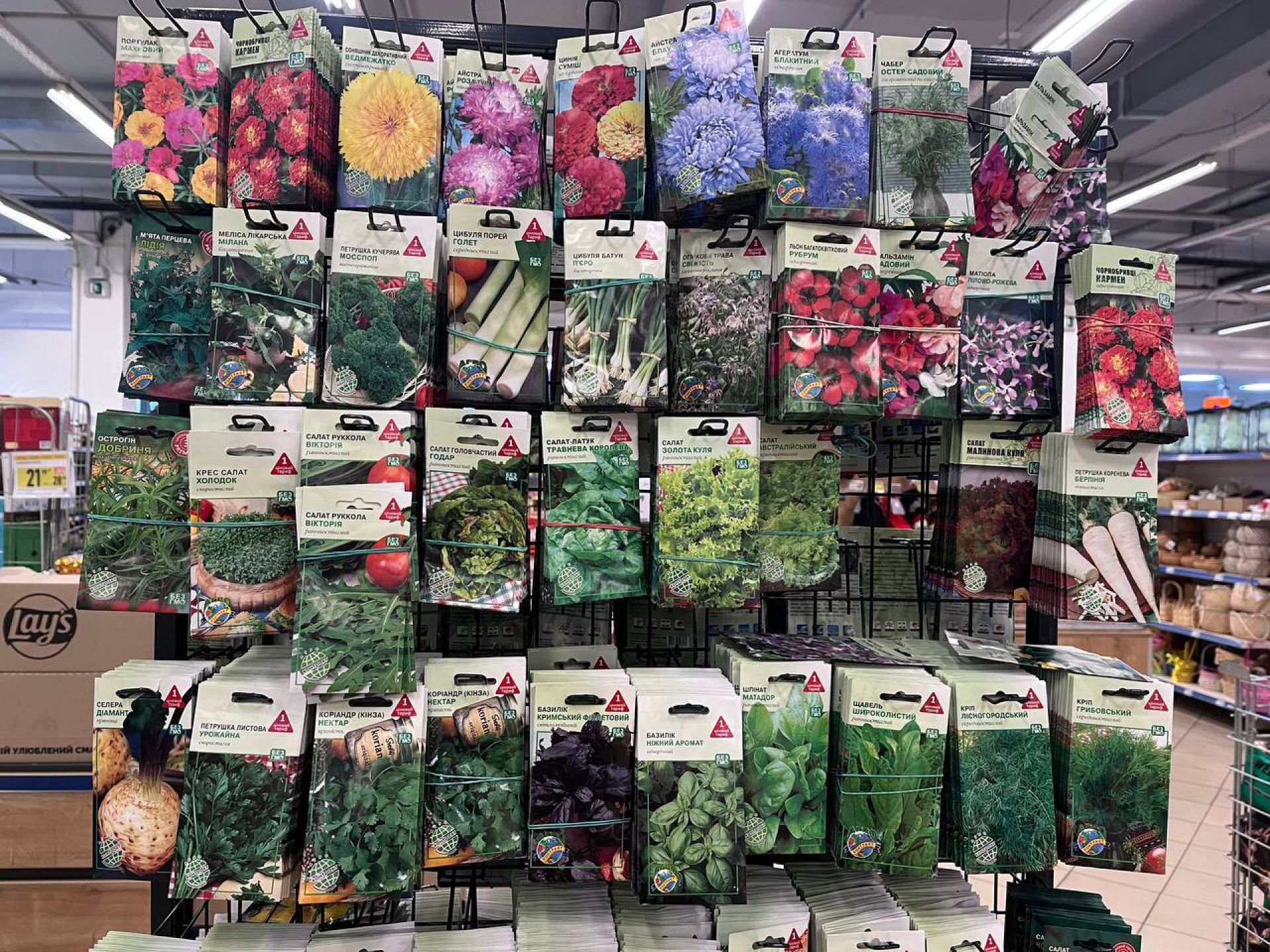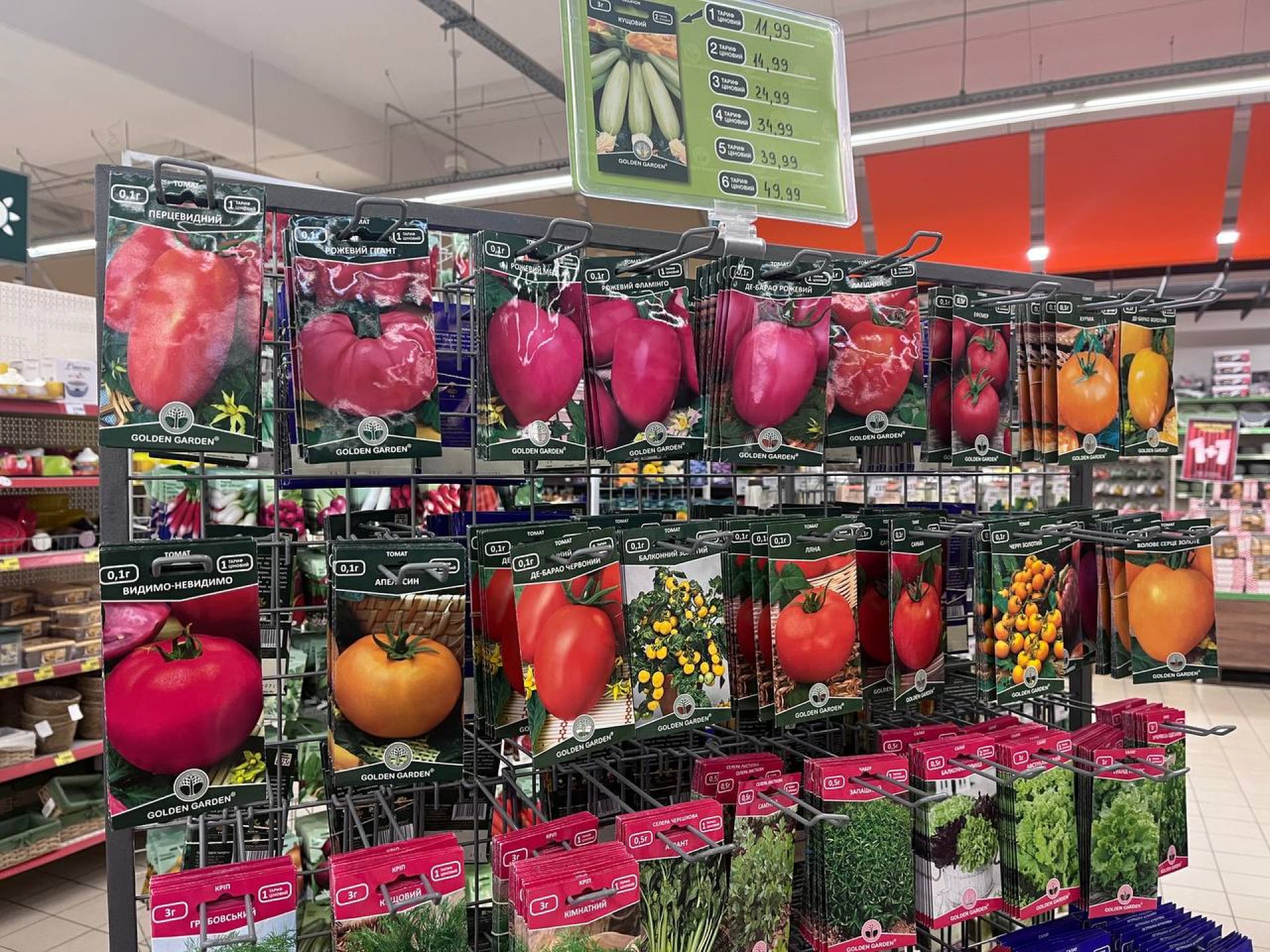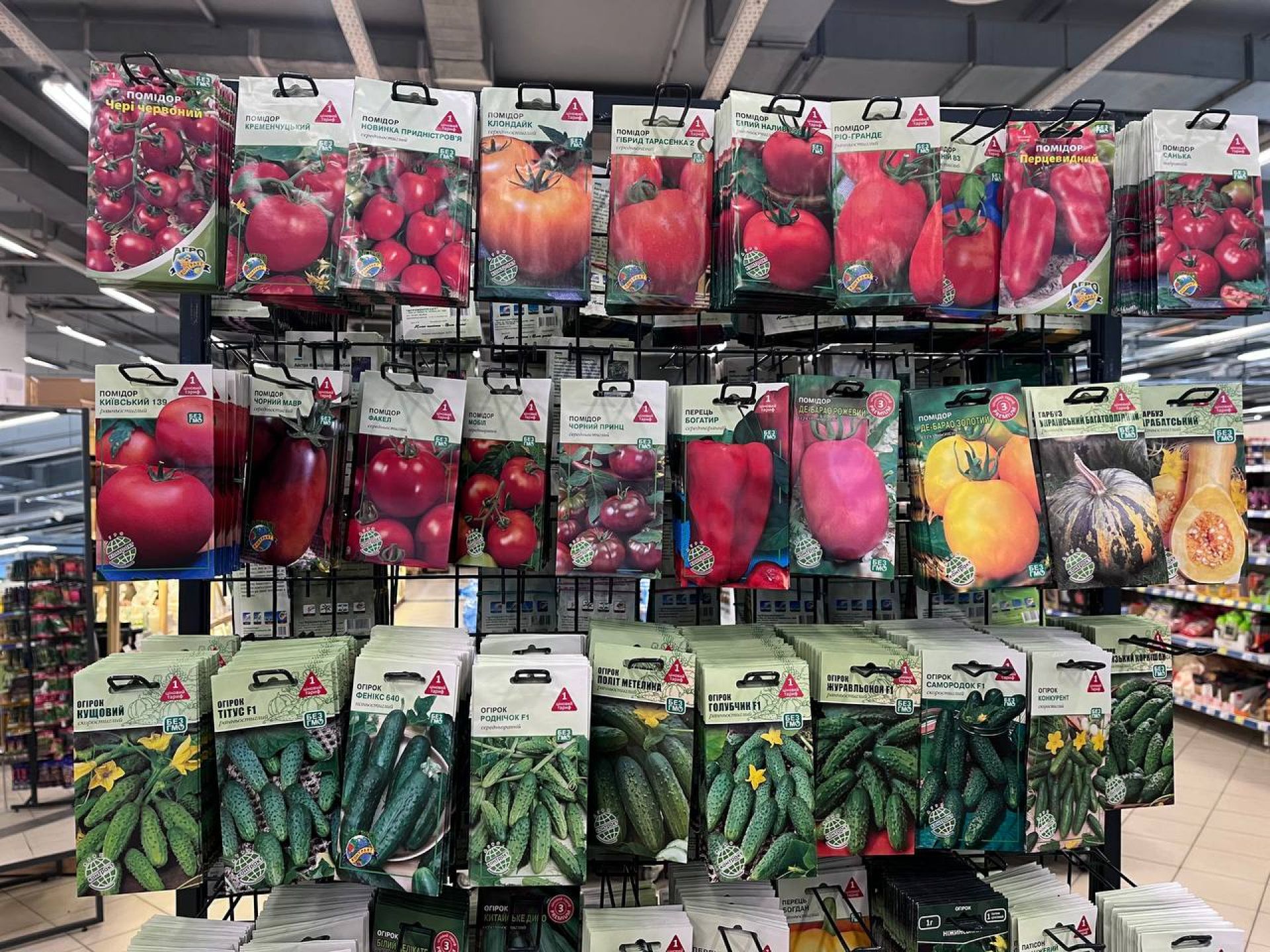 Також пакетики з насінням журналісти знайшли і в супермаркеті «Сільпо» (вулиця Торговиця, 15-А). За один просять від 7,99 до 19,99 гривні. Чи не найбільше є помідорів, трохи перцю, огірків, гарбуза. Можна купити і кукурудзу, моркву, редис, цибулю та горох.