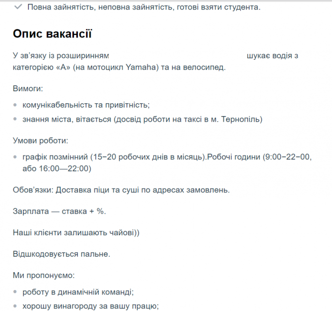 Хоча можна знайти і вакансії, де водійське посвідчення не потрібне, а вам нададуть велосипед для розвезення їжі.
