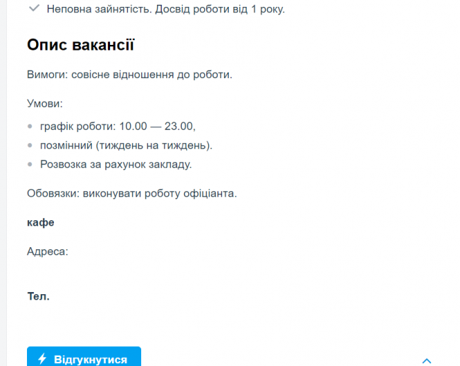 – Про всі деталі ви можете дізнатися з оголошення. Якщо робота вас зацікавила, пропонуємо зустрітися, – відповіли нам за одним з номерів.