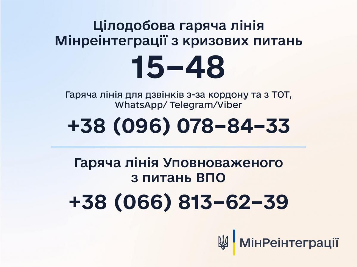 Про це повідомили в Міністерстві з питань реінтеграції тимчасово окупованих територій України.