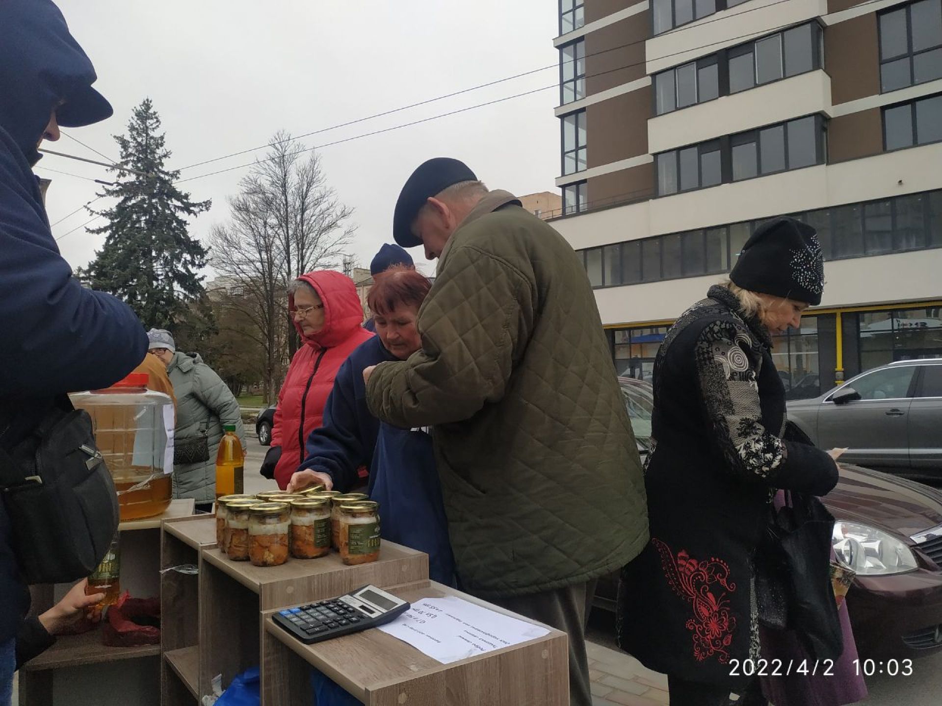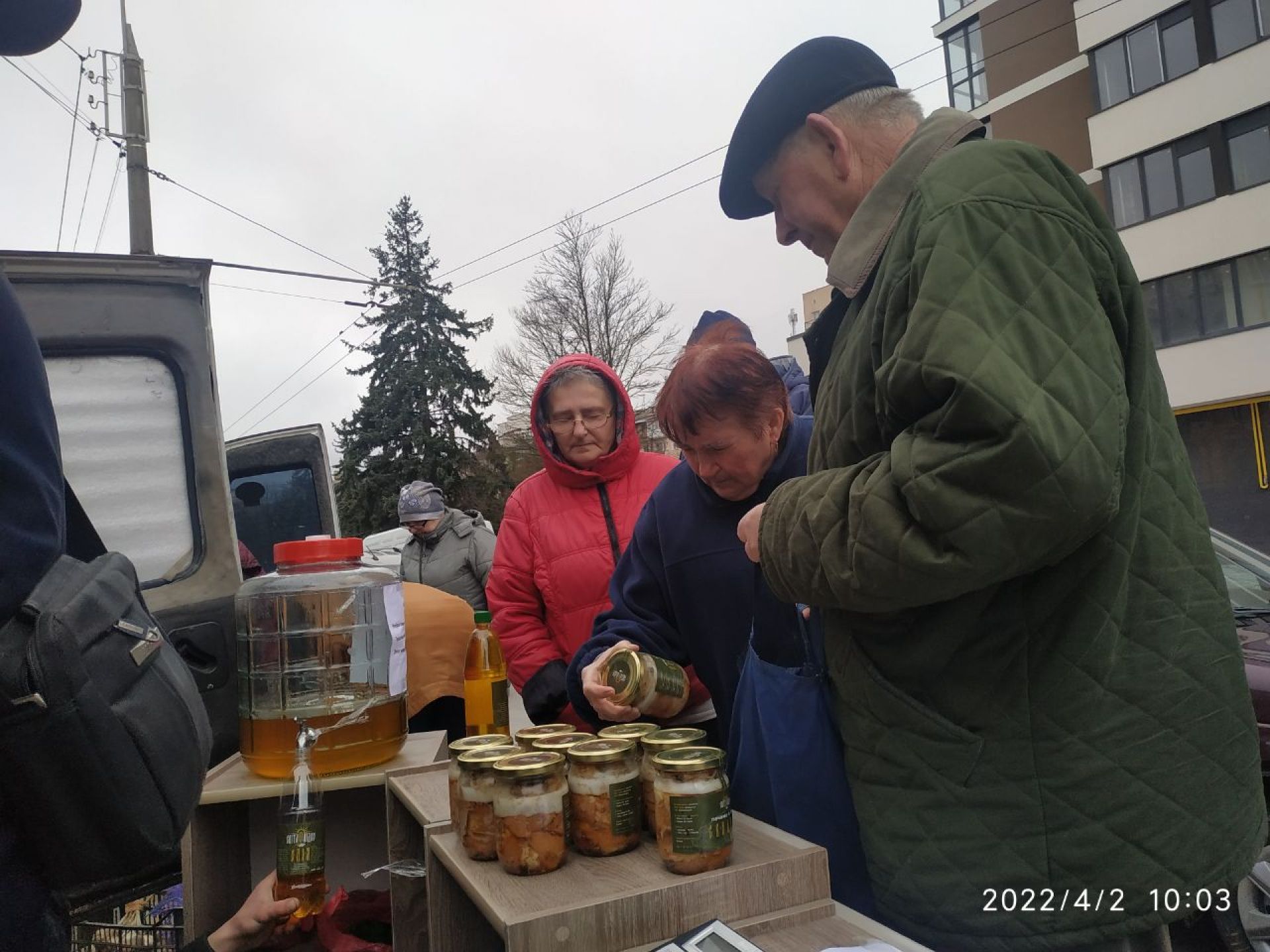 Кілька продавців продавали олію по 55 гривень за літр, а також домашні м’ясні консерви. Свинна тушкованка – по 70 гривень за півлітрову банку, свинні ребра – по 50 гривень за банку місткістю 0,7 літра.