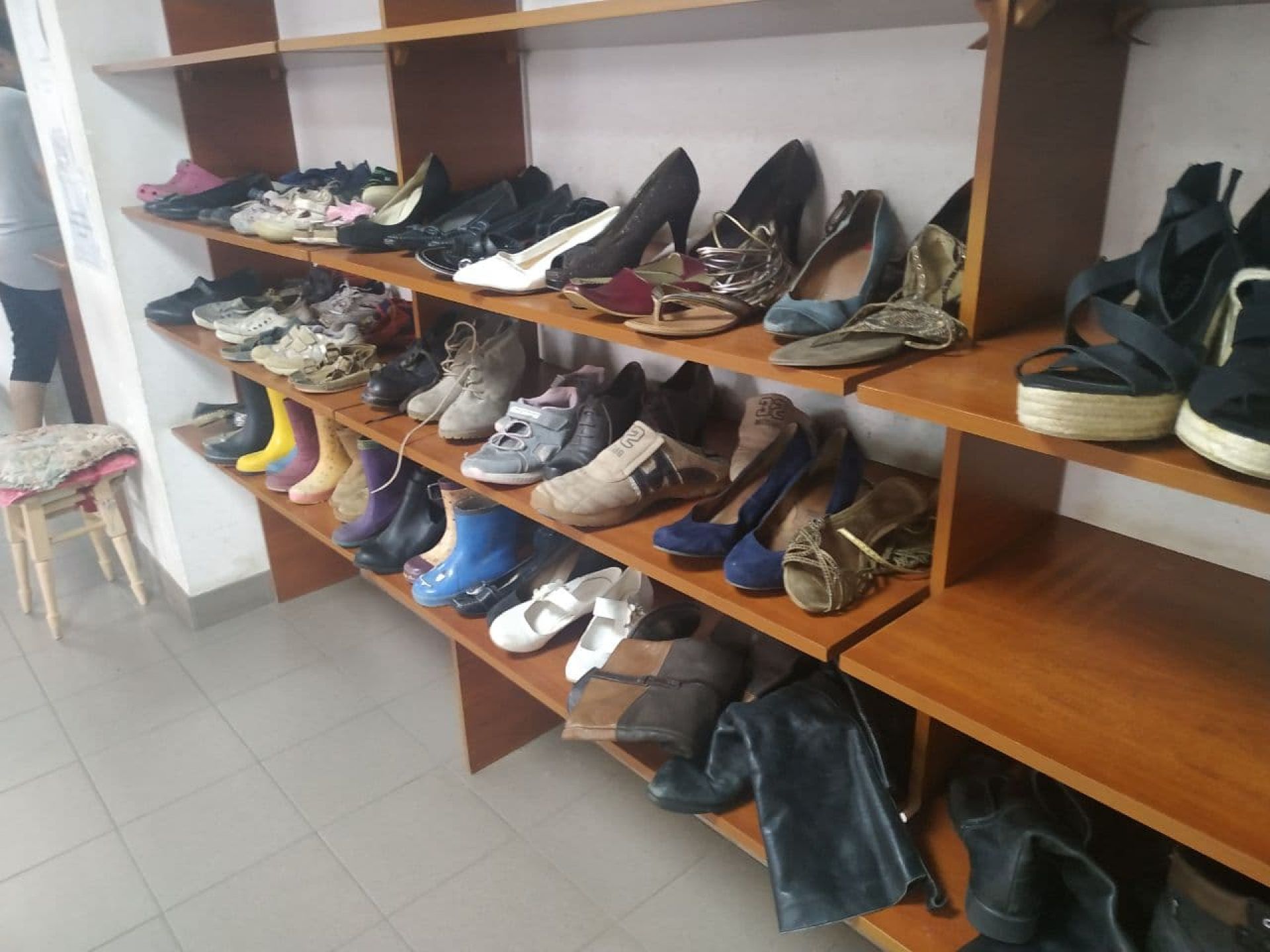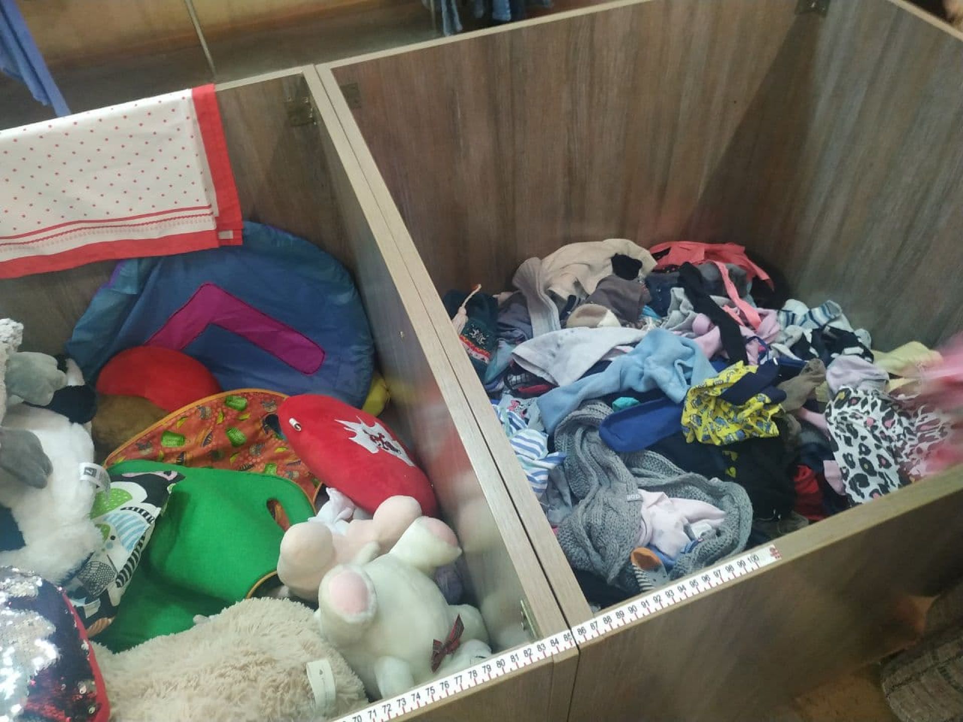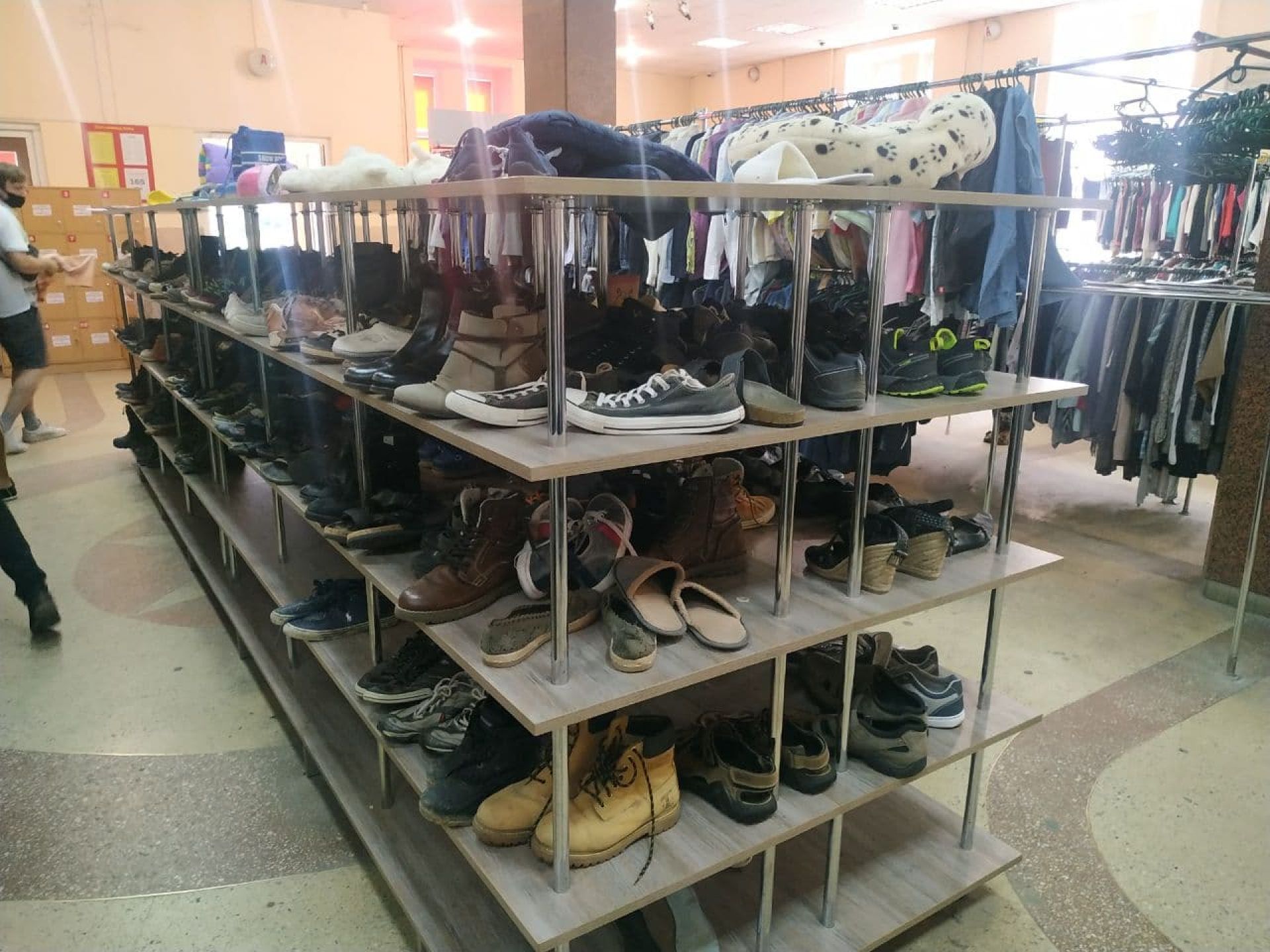 Іграшки, до речі, виглядають новими, вони чисті, без плям. А от взуття зношене, а деяке взагалі порване. Також журналісти звернули увагу на те, що в чоловічому відділі штани, які розвісили на вішаки, торкаються підлоги, а дехто з відвідувачів необачно на них наступає.
