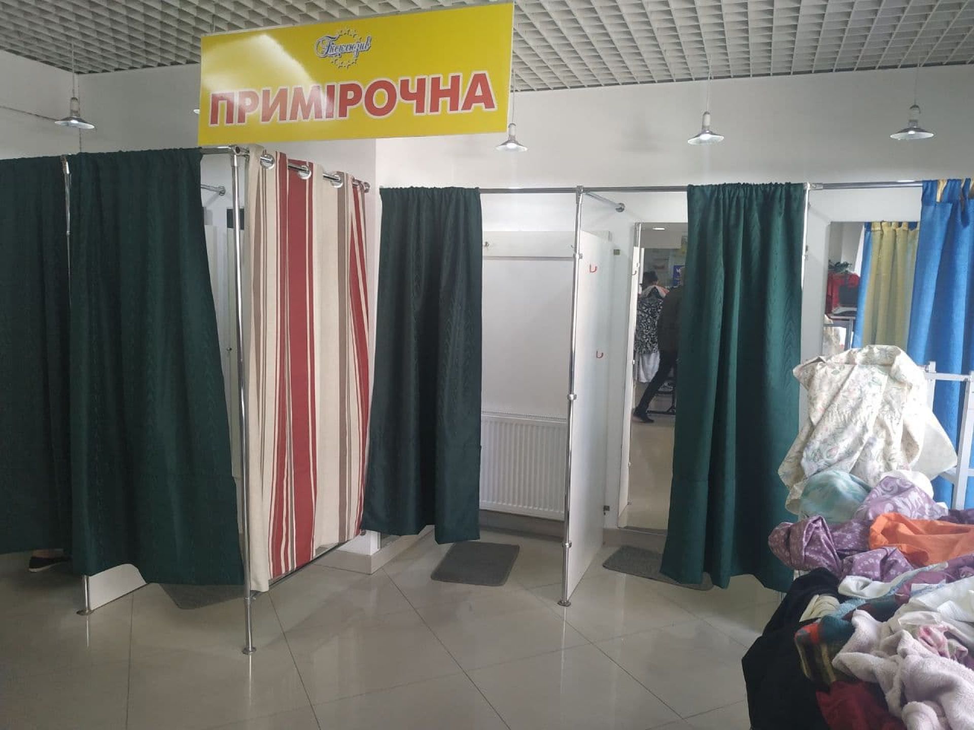 Щодо примірочних, їх є дві. Всередині все типово: вішаки для одягу, килимок та штори, які трохи просвічуються і помітно силует людини всередині.