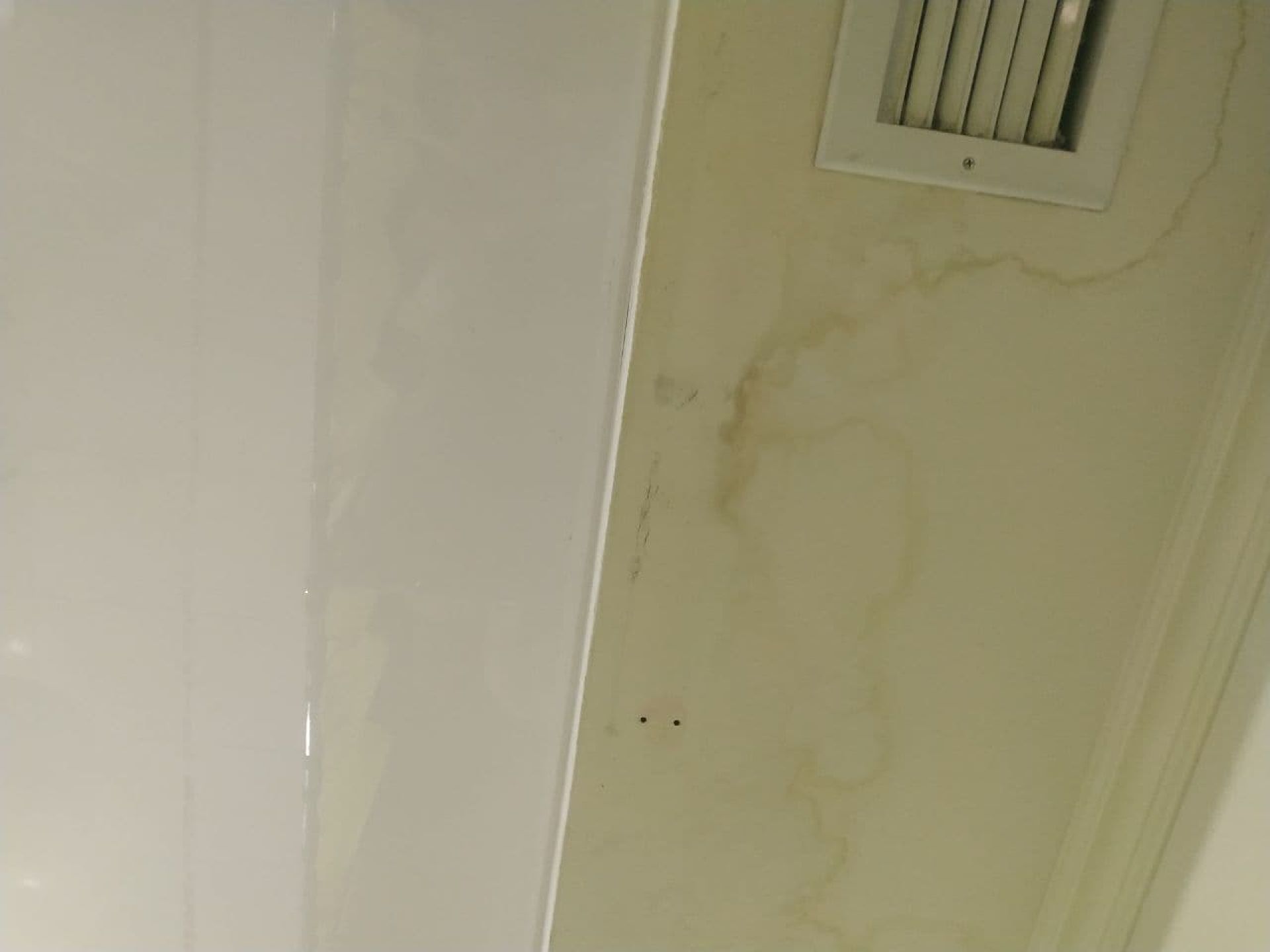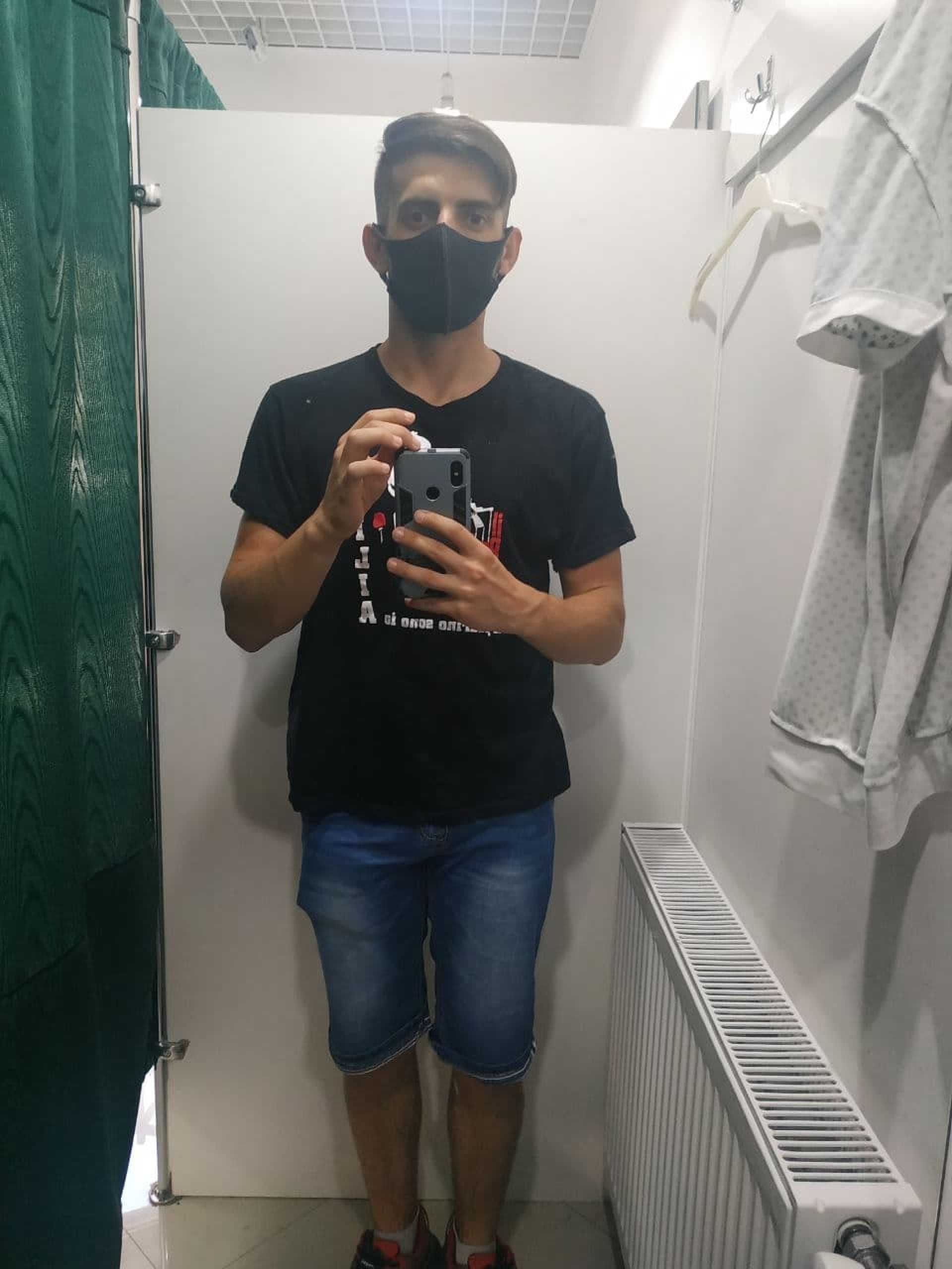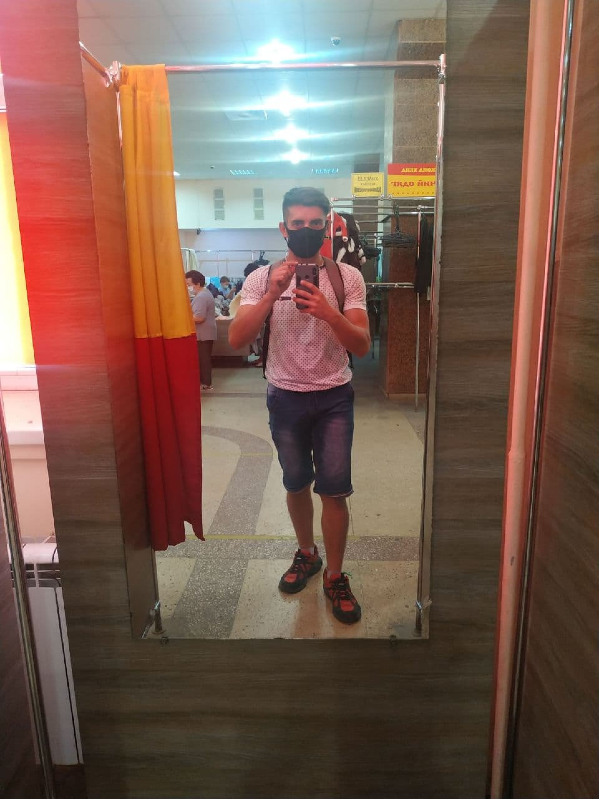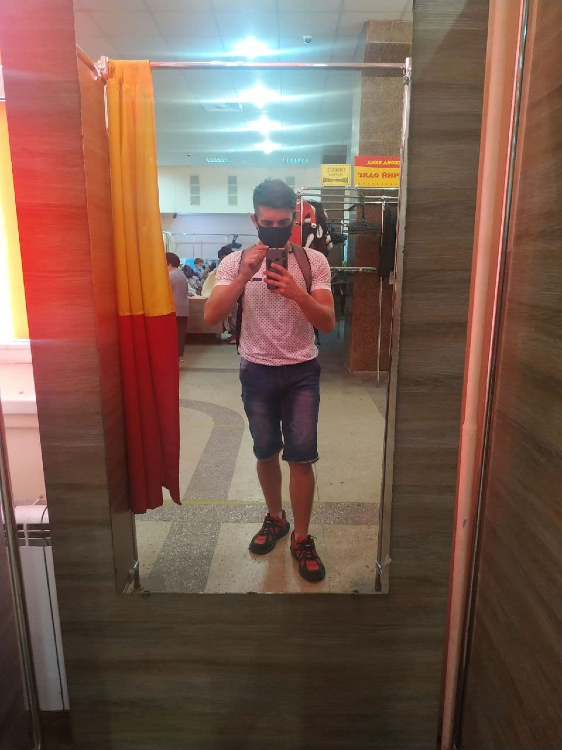 Щодо примірочних, то їх всього чотири і цього замало. Шторки кабінок просвічуються і дуже добре видно, хто знаходиться за ними. Стеля прямо над примірочними дзеркальна і створює відчуття дискомфорту адже з залу видно людину, яка переодягається всередині. До того ж, ці примірочні для чоловіків та жінок в одному залі. У примірочній є гачки для одягу, а також килимок та дзеркало. А от на стінах – сліди від потоків води.
