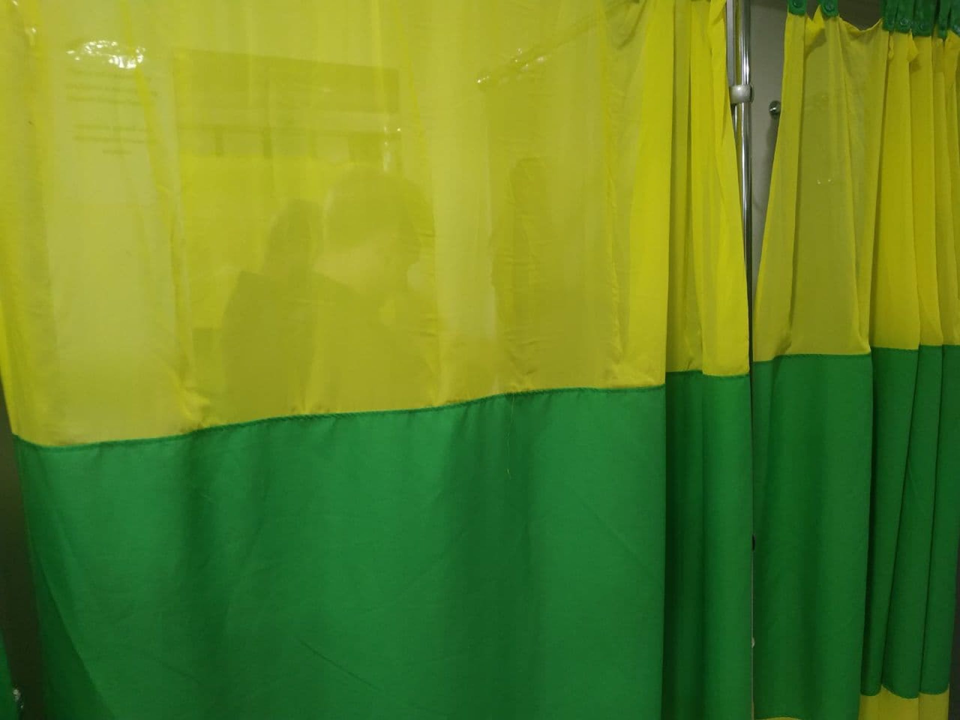 В примірочнних є вішаки для одягу та велике дзеркало. Штори – непрозорі.