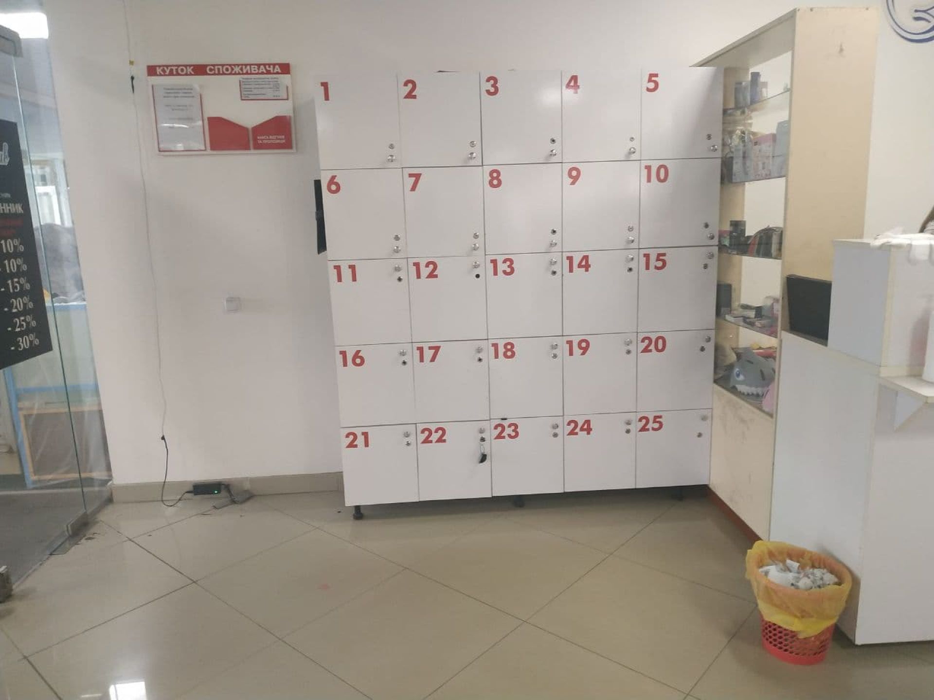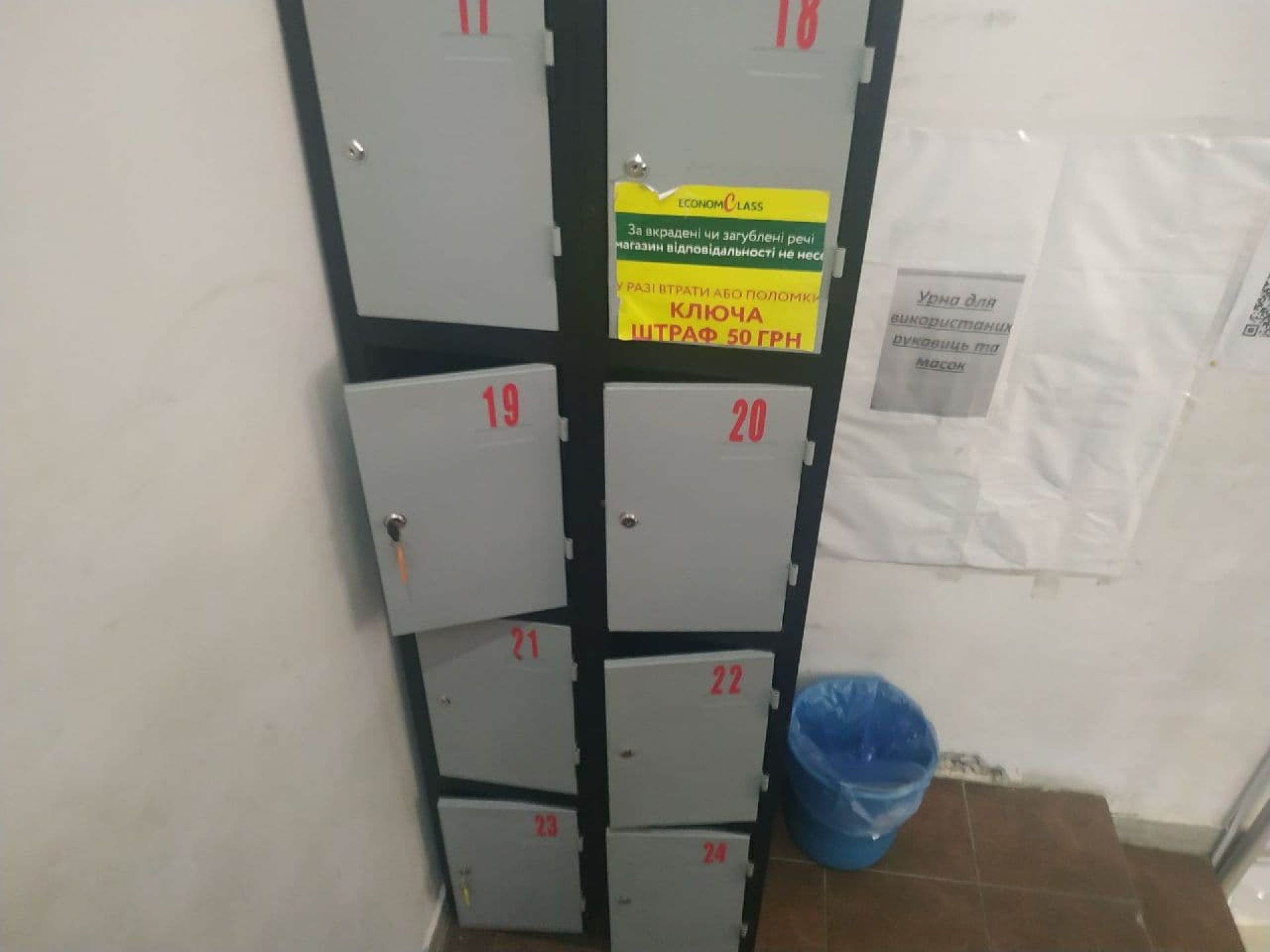 Цей магазин розташований на території Центрального ринку. Біля входу є шафки для речей покупців. Вони закриваються на замок. Всього їх 16.
