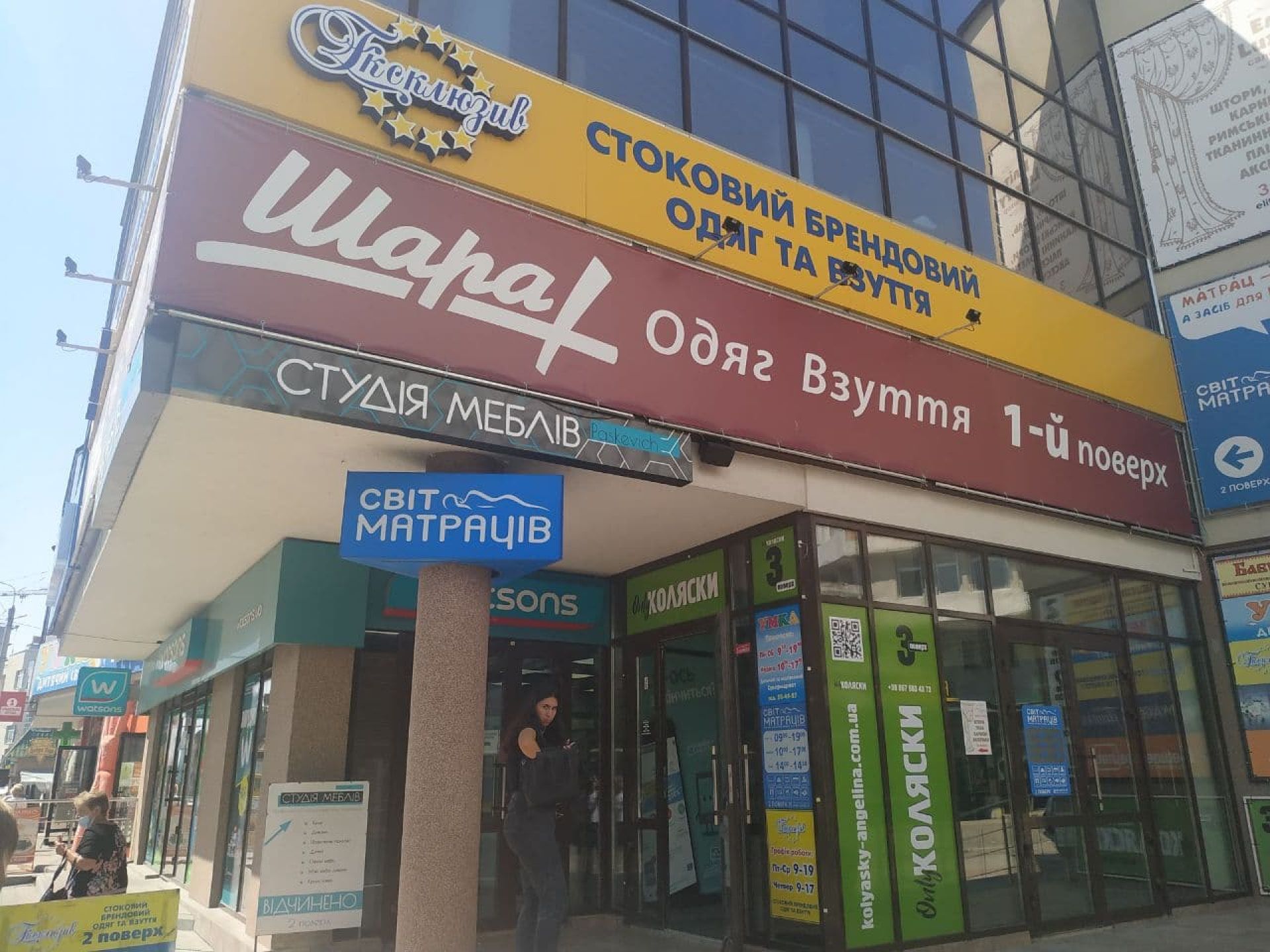 Магазин розташований на Східному масиві на перетині проспекта Бандери та вулиці Слівенської. Сюди журналісти також зайшли в середу, в переддень завозу нових речей. Тому зустріли лише напівпорожнє приміщення з декількома заповненими відділами одягу. Воно було не в найкращому стані.